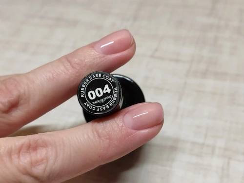 Авансом 5 звёзд потому что только испробовала, дополню отзыв как отношу хотя бы две недели. Базу нанесла после праймера с липким слоем, прям густая такая, я еще не пробовала ничего подобного. Цвет 004 прям светленький, нанесла в один слой, в два не рискнула, так как одного прям за глаза, ноготь прям утолщает. В два слоя можно их же базы с мелким шимиром, а эту не надо, эту лучше под колор-лак. Другие цвета из этих баз не пробовала про них ничего сказать не могу. Заказала у этого же продавца примерно такой же цвет с шимером тоже базу, вот ее я рассчитываю ни чем не красить так покрывать в один может даже в два слоя попробую, может даже под френч. А эту буду смотреть, позже отпишусь как она себя ведет в носке. Фото ногтей с базой и фото сверху базы этой нанесла пигментный лак.