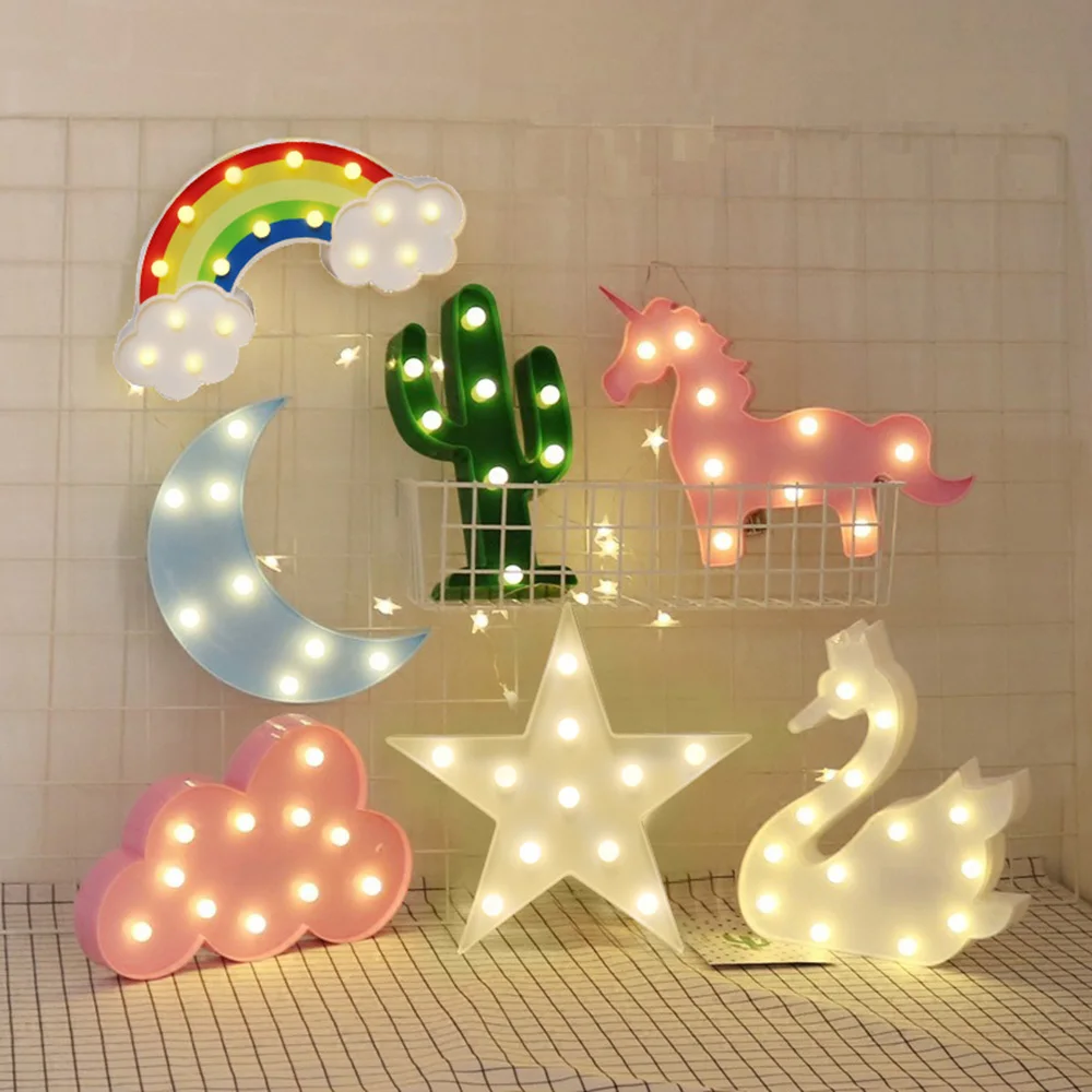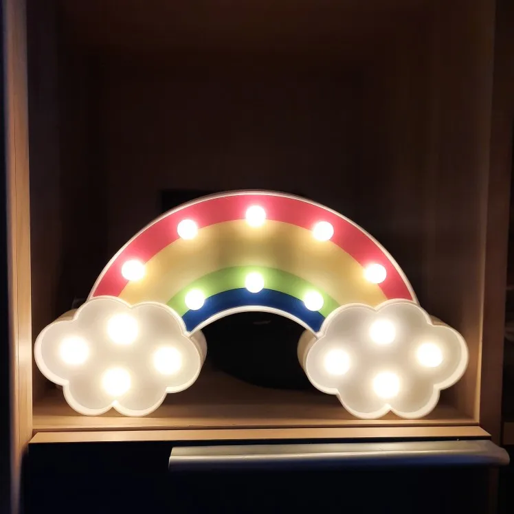 Настенный светодиодный светильник с радужными звездами, облаками, луной, на батарейках, теплый белый шатер для спальни, декор детской комнаты