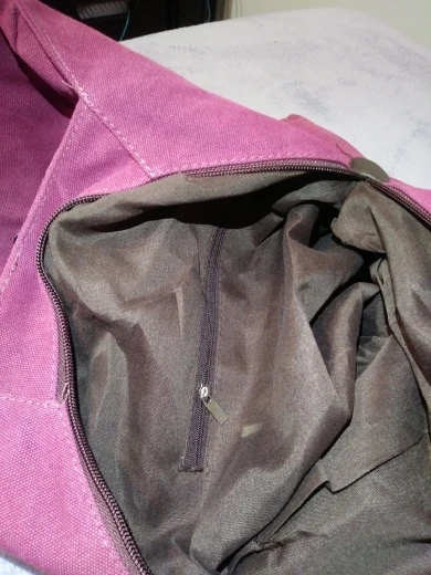 Bag had a white big mark on it in the shape of a B. Looks like it was in the dying process. I can live with it