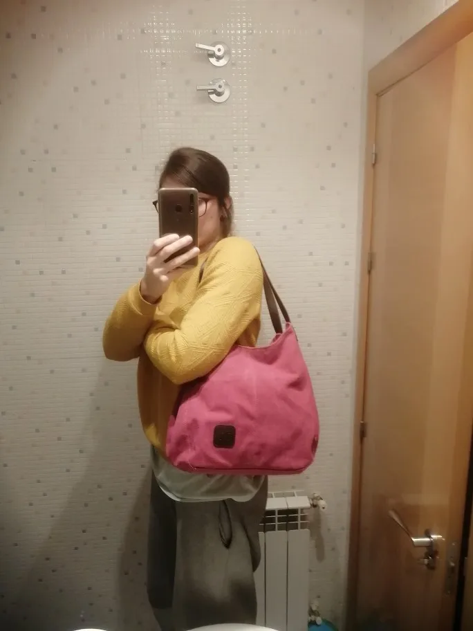 Сумка среднего размера, Он имеет 3 отсека 2 с магнитным замком и 1 с застежкой-молнией, в этом есть еще одна вторая сумка с еще одним застежкой-молнией. Ткань на ощупь немного хрупкая, но ее можно стирать в стиральной машине много раз, ленты Кожа выглядит так, как будто она сопротивляется, она пришла с определенным запахом пластика, поэтому вы должны повесить ее, чтобы пессимистика была удалена, Ах и будьте осторожны с тем, что находится в сумке... (хлопот) правильная и быстрая доставка