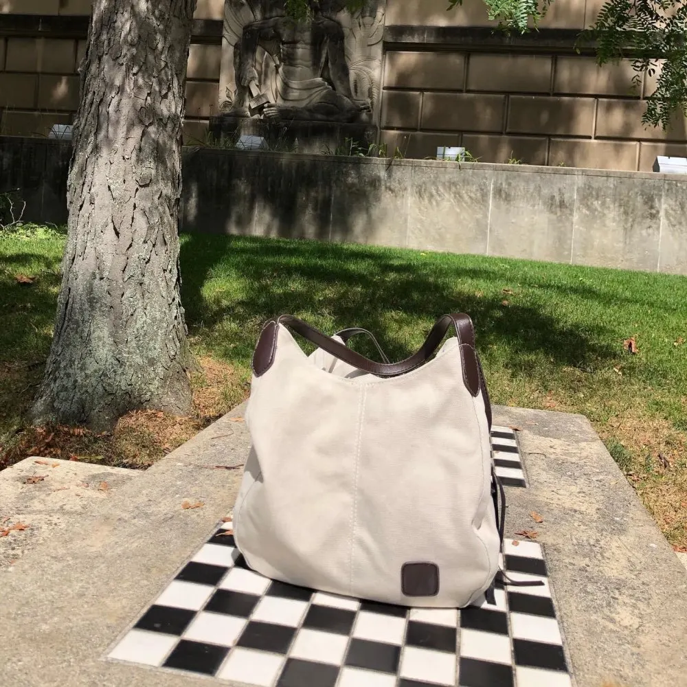 Люблю люблю эту сумку! Вместительный, милый, сочетается со всем! Карманы огромные! Парусина имеет приятный вес, ручки имеют достойное качество и хорошо держатся. Я носил эту сумку уже полдюжины раз, и я могу носить с собой книги и бутылки с водой, а также другие обычные вещи.