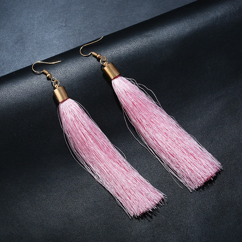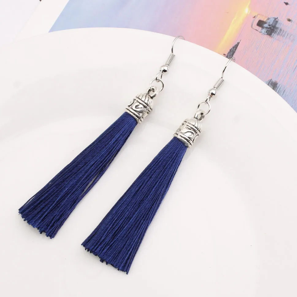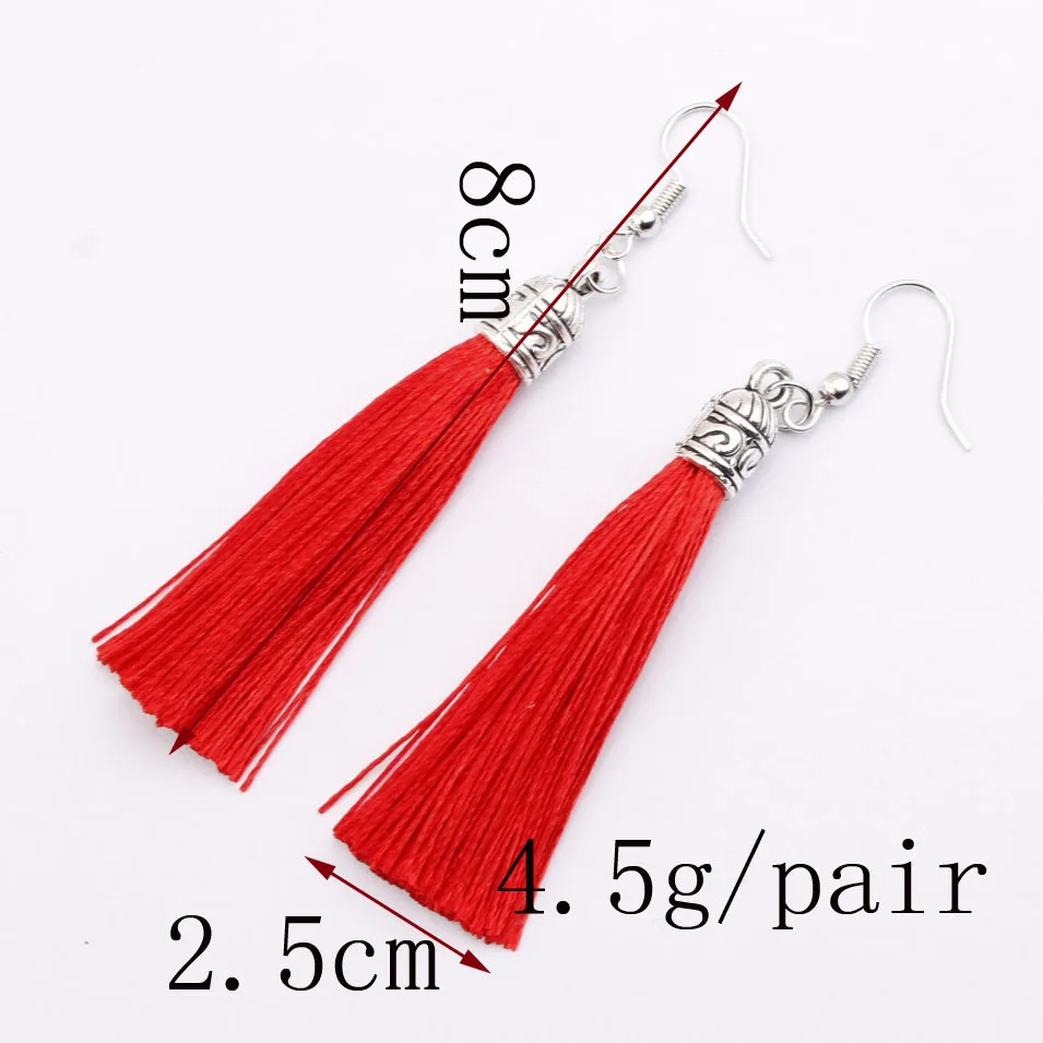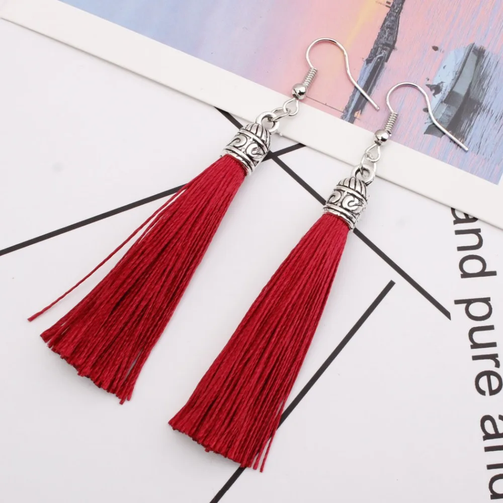 Винтажные этнические длинные висячие серьги с кисточками для женщин, женская мода, богемные белые, красные, шелковые тканевые Висячие серьги, индийские ювелирные изделия