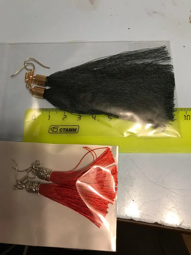 Серьги красивые, яркие, смотрятся как на картинке. По виду они скорее "улично-летний" вариант, все же чуть-чуть лохматые (как на фото продавца), для вечернего выхода не подойдут на мой взгляд. А так классные :)
