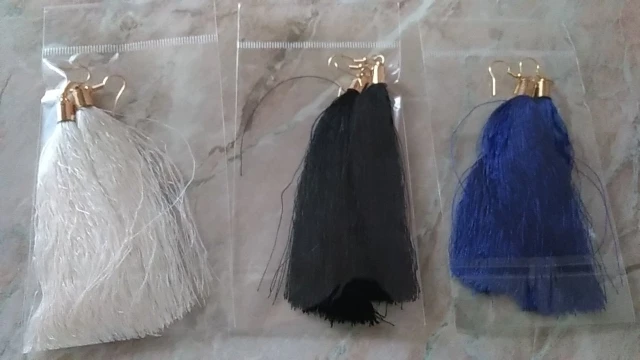 Пришли в срок. Упаковано в мал.пакет, 2 серёжки совместно (некоторым приходит каждая сережка индивидуально упакована). Края немного не ровные, не беда, подстригла. И есть заломы ниток, но если смочить водой, то расправляются. В целом - я довольна! С продавцом не общалась.