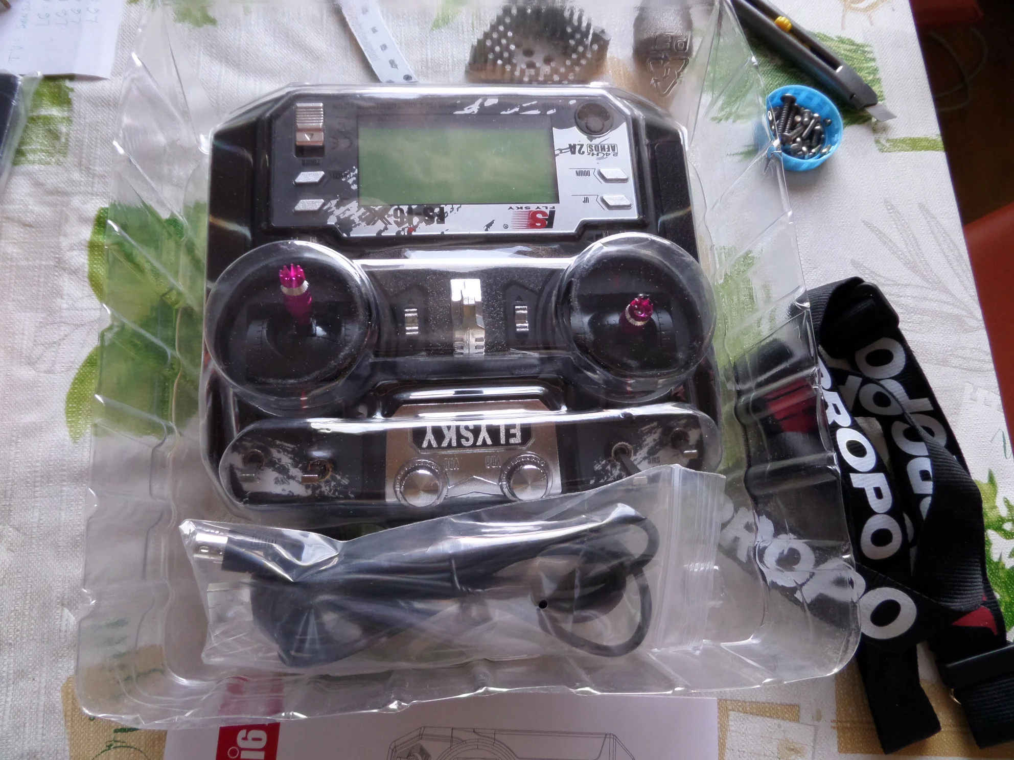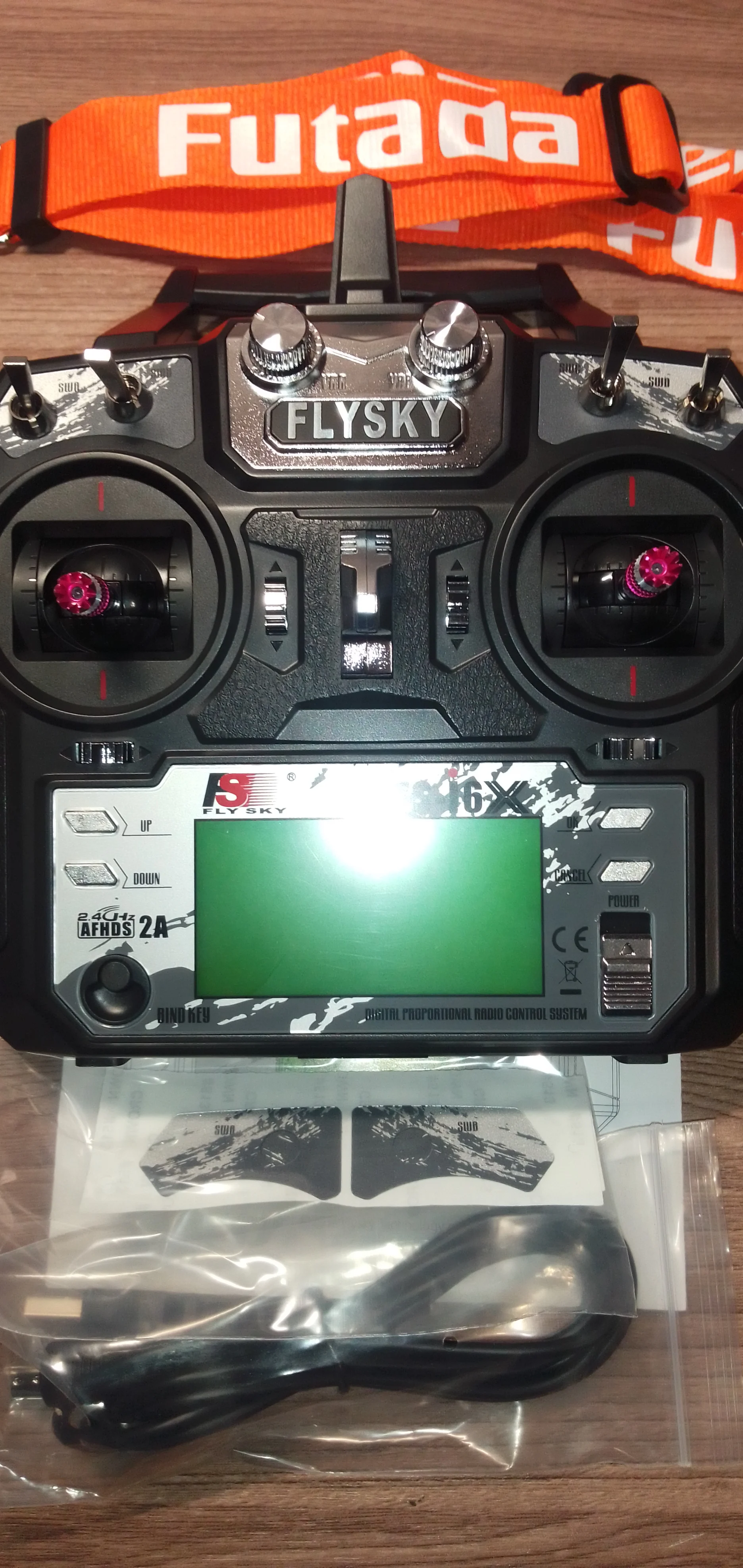 Через 10 дней я получил мой FlySky i6X доставлен в Германию. Моя коробка абсолютно не повреждена. Поставляется с кабелем и шейным ремешком, как в описании. Кабель работает с aerofly7 Я очень доволен этим продуктом, и теперь я могу начать свое новое хобби С Новым Годом