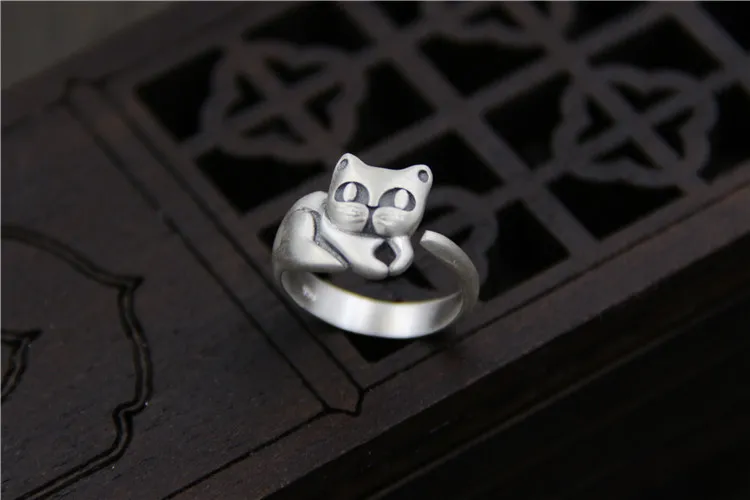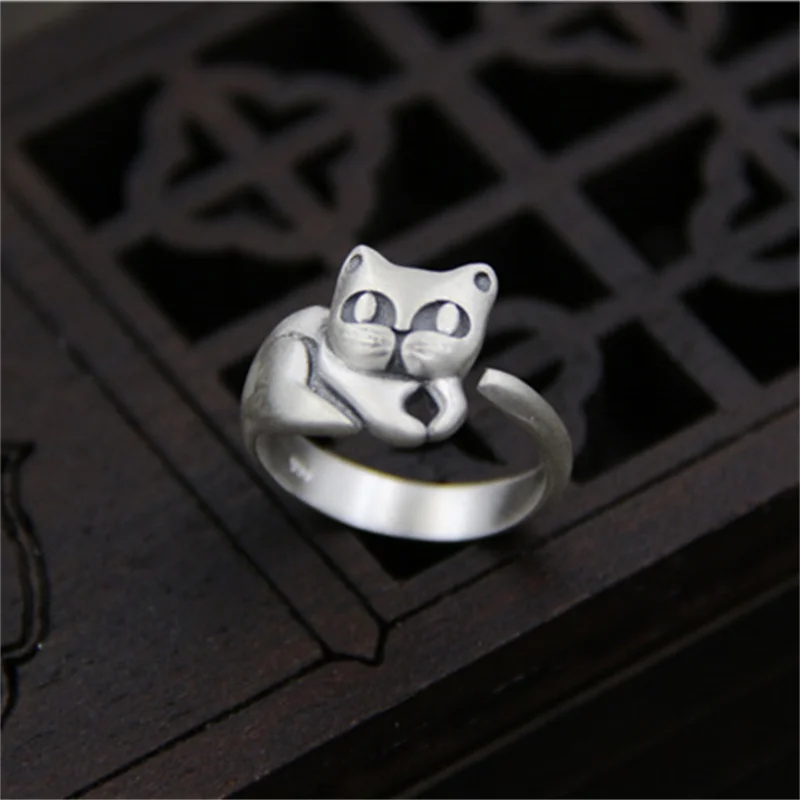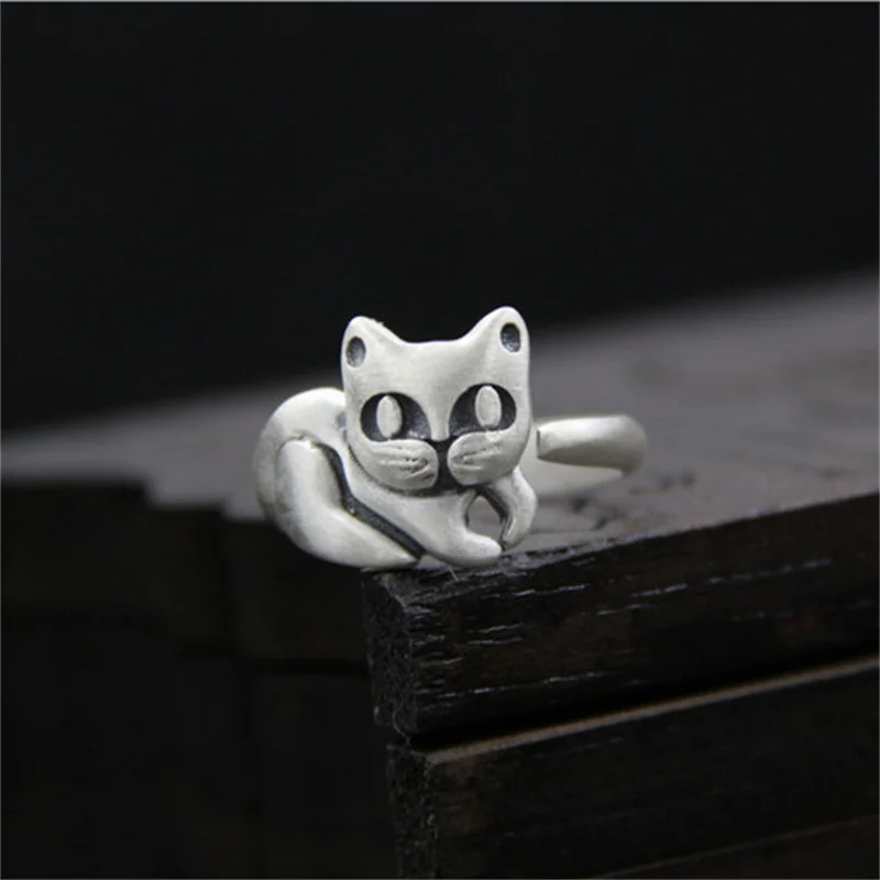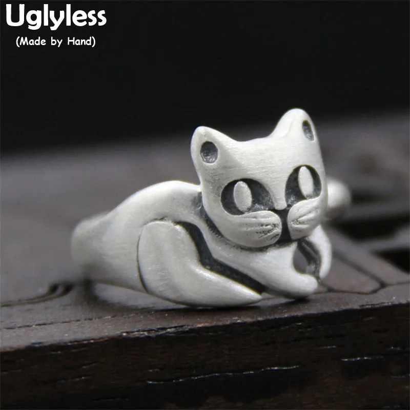 Uglyless Настоящее S999 серебро для женщин ручной работы милый кот кольцо на палец регулируемый палец ювелирные изделия корейские девушки простая Мода Бижутерия