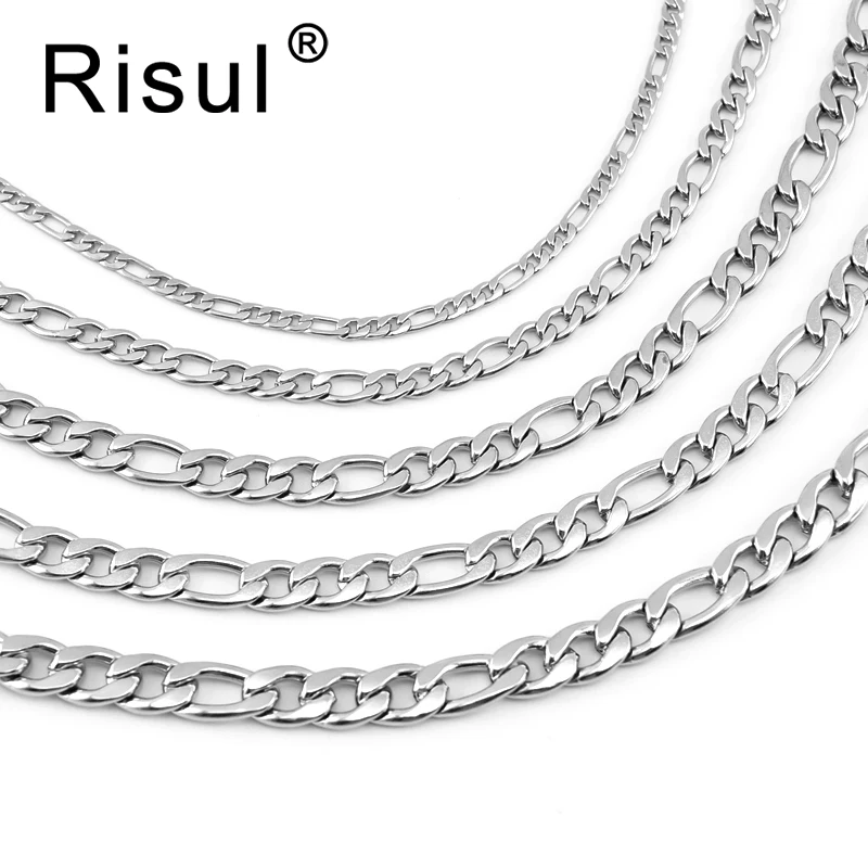 Цепочка Фигаро для мужчин и женщин, ожерелье из нержавеющей стали с...