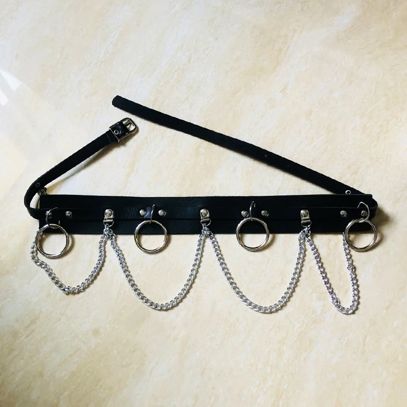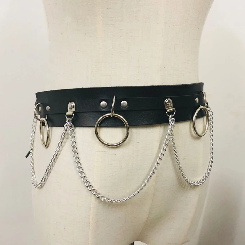 Ремень унисекс кожаный, широкий, с голограммой, кругом, в готическом стиле, 2020, металлический ремешок-цепочка