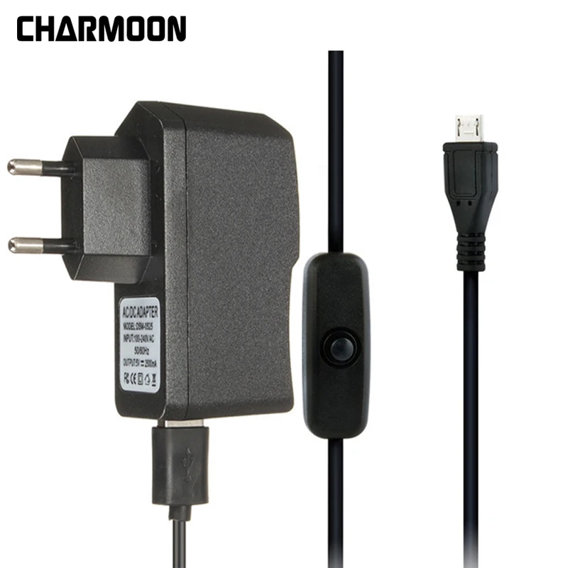 Блок питания переменного тока для Raspberry Pi 3, 5 В, 2,5 А, USB-адаптер для зарядного устройствапереключатель ВКЛ.ВЫКЛ., Кабель Micro-USB для быстрого питания + плюс