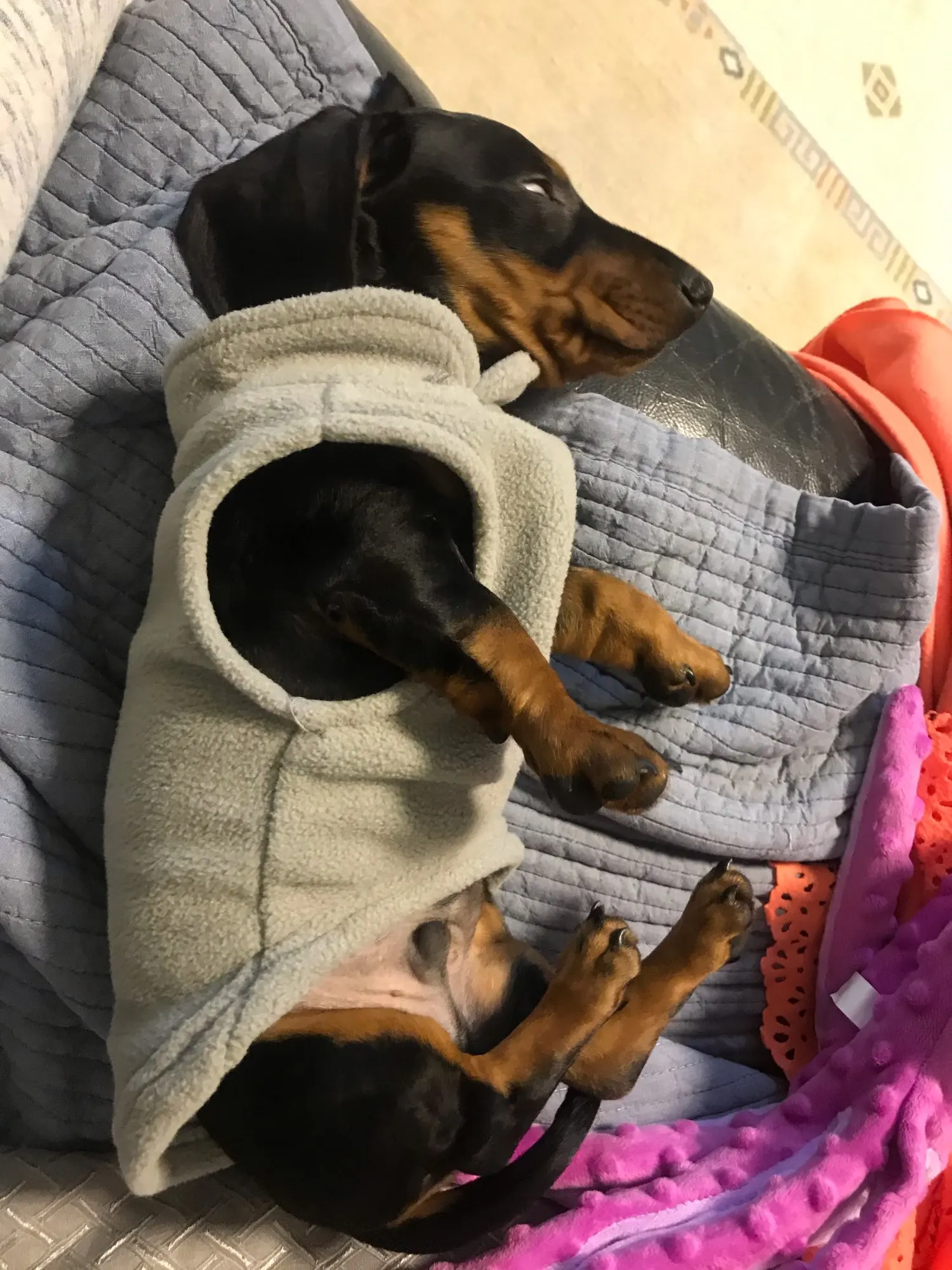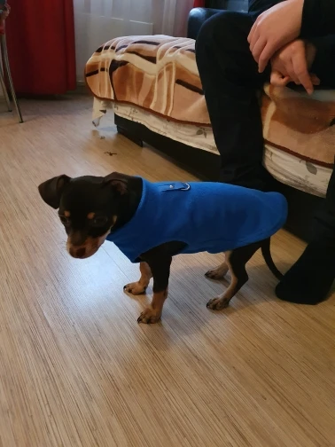 На Цвергпинчера размер L нормально подошёл /вес собаки 7,5 кг/ можно и побольше размером взять