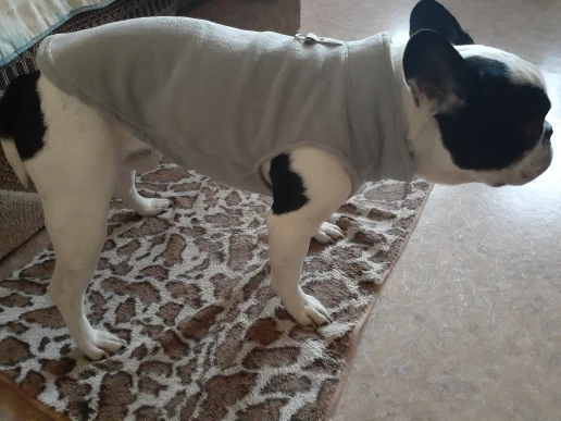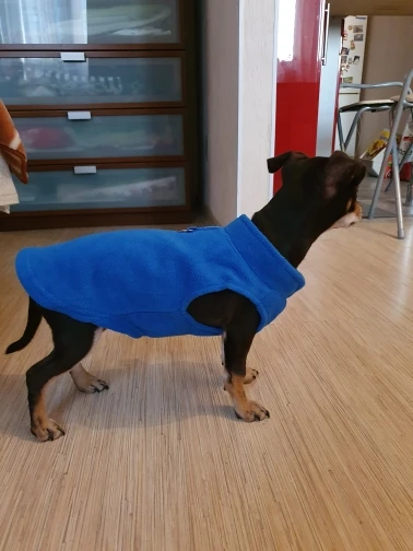Супер жилетка. Плотный флис, хорошее качество. На француза 14 кг. Села хорошо. Рекомендую.