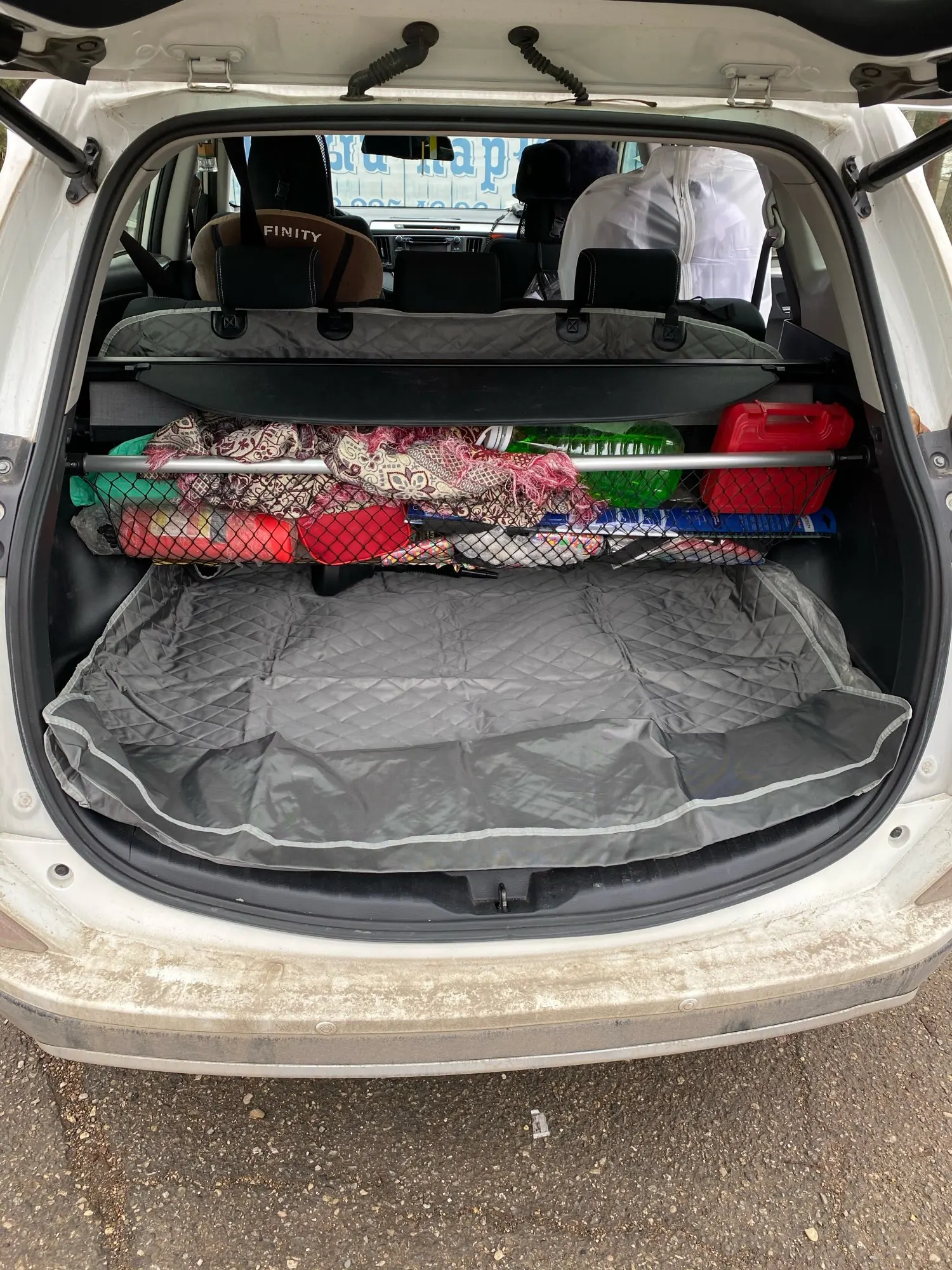 Отличный чехол. На пятый РАВ4 идеально подошёл. Закрывает спинки заднего ряда сидений, весь багажник и задний бампер. Рекомендую!
