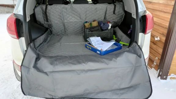 Очень быстрая доставка IML, до двери! Чехол понравился. Его не хватало в багажнике, вечно подкладывали клеенки чтобы не испачкать! Теперь все аккуратно! Спасибо продавцу! Кстати, когда машина грязная и нужно в ней поковыряться, то опустив край, ни за что не испачкаешься