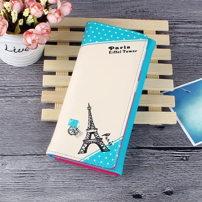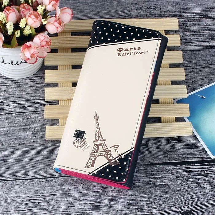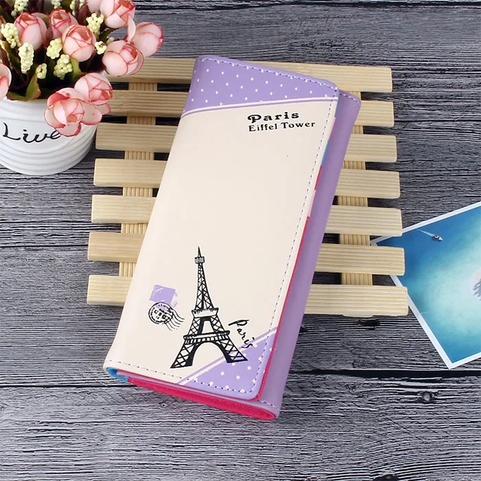 BOTUSI Париж Эйфелева башня штампы держатель для карт кожаный кошелек женский длинный кошелек из искусственной кожи Обложка для паспорта модная сумка для монет на молнии