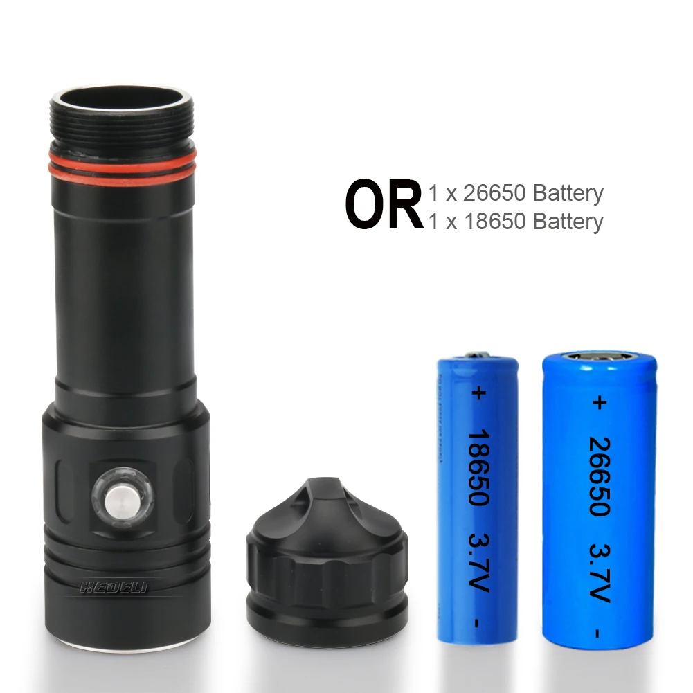 Фонасветильник Xm L2, светодиодный, для подводного плавания, 100 м, 26650, 18650