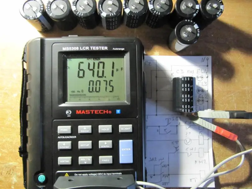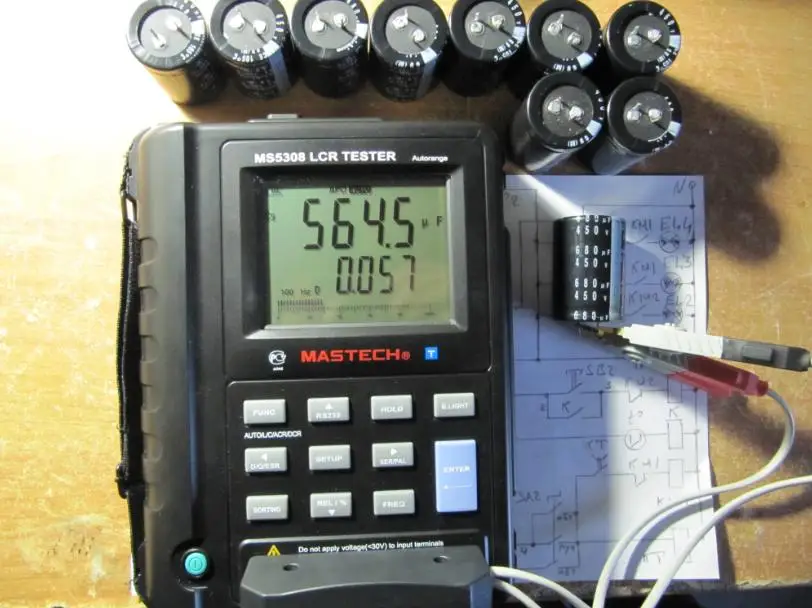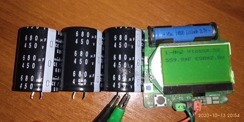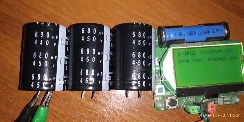 Измерение емкости немного ниже, чем указано (610 мкФ). Я еще не примерил его на пластине.