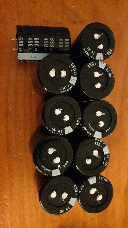 Хорошая упаковка. Доставка в Петрозаводск 33 дня. Ёмкость конденсаторов от 565 мкФ до 640 мкФ. Но по отзывам, я знал, что у этих конденсаторов ёмкость ниже номинальной, поэтому заказал на одну ступень выше (вместо нужных мне 560 мкФ, взял 680 мкФ). 450 вольт в течении 24 часов все конденсаторы выдержали (ёмкость осталась без изменений). Конечно, не EPCOS, но за такую цену, сойдёт. Дополнительно, в качестве бонуса, продавец положил пакет (260 штук) конденсаторов 25 В, 10 мкФ.