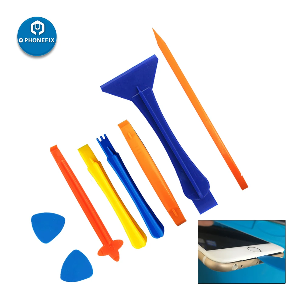 PHONEFIX 8 в 1 пластиковый набор для открывания телефона DIY, набор для разборки экрана, набор инструментов для демонтажа, набор инструментов Spudger Crowbar Triangle Pry, инструменты для выбора