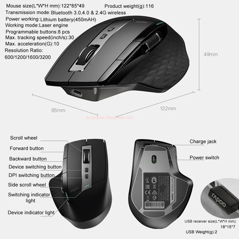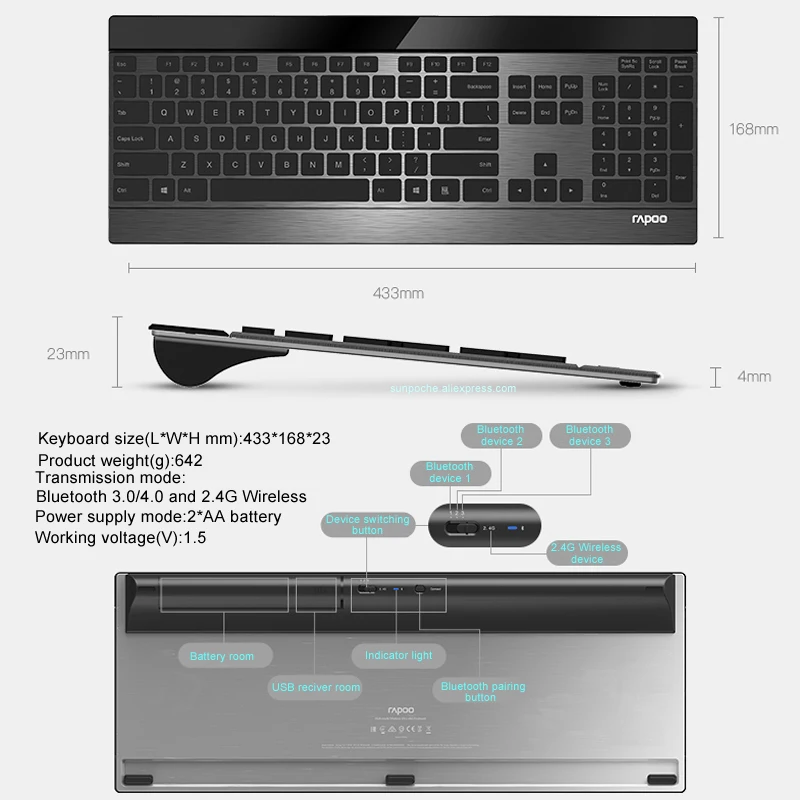 Интеллектуальный переключатель между Bluetooth 3,0, 4,0 и 2,4 г обеспечивает стабильную беспроводную передачу. Можно еще использовать комбо вне зависимости от нехватки USB порта или потери приемника.