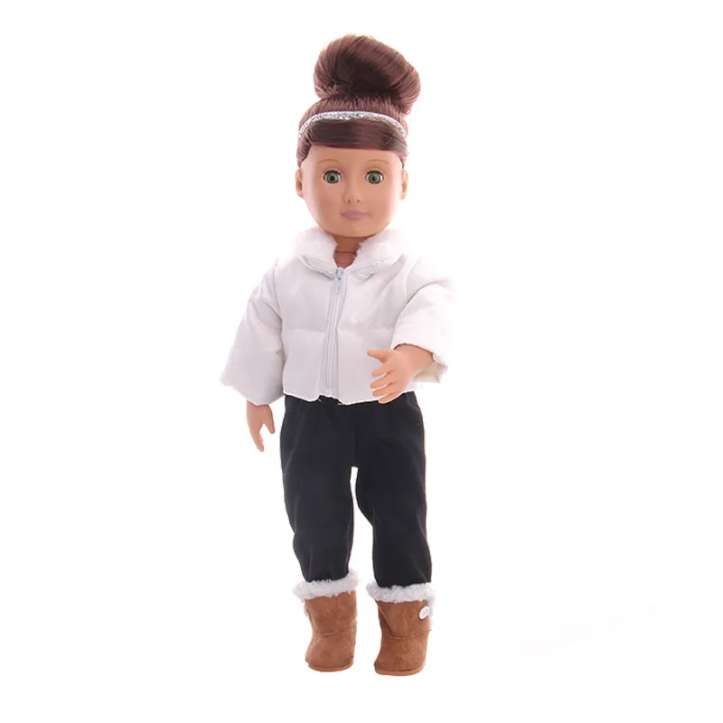 Кукольная одежда, 2 шт.компл., белая куртка + черные джинсы, костюм для девочек, 18 дюймов, американский и 43 см
