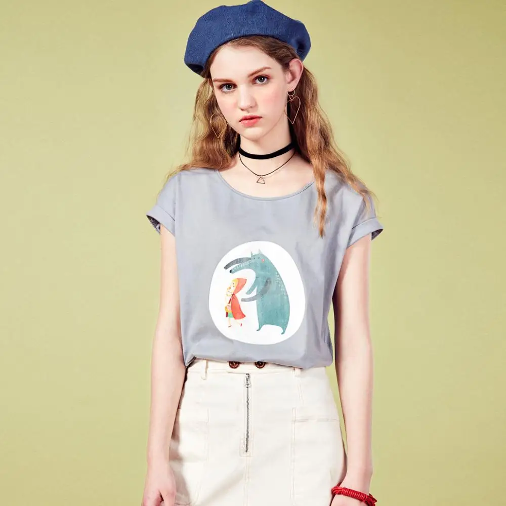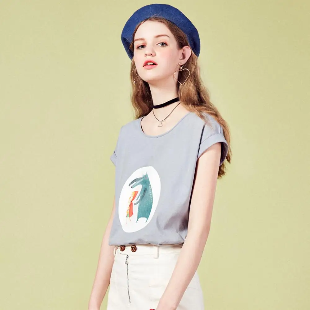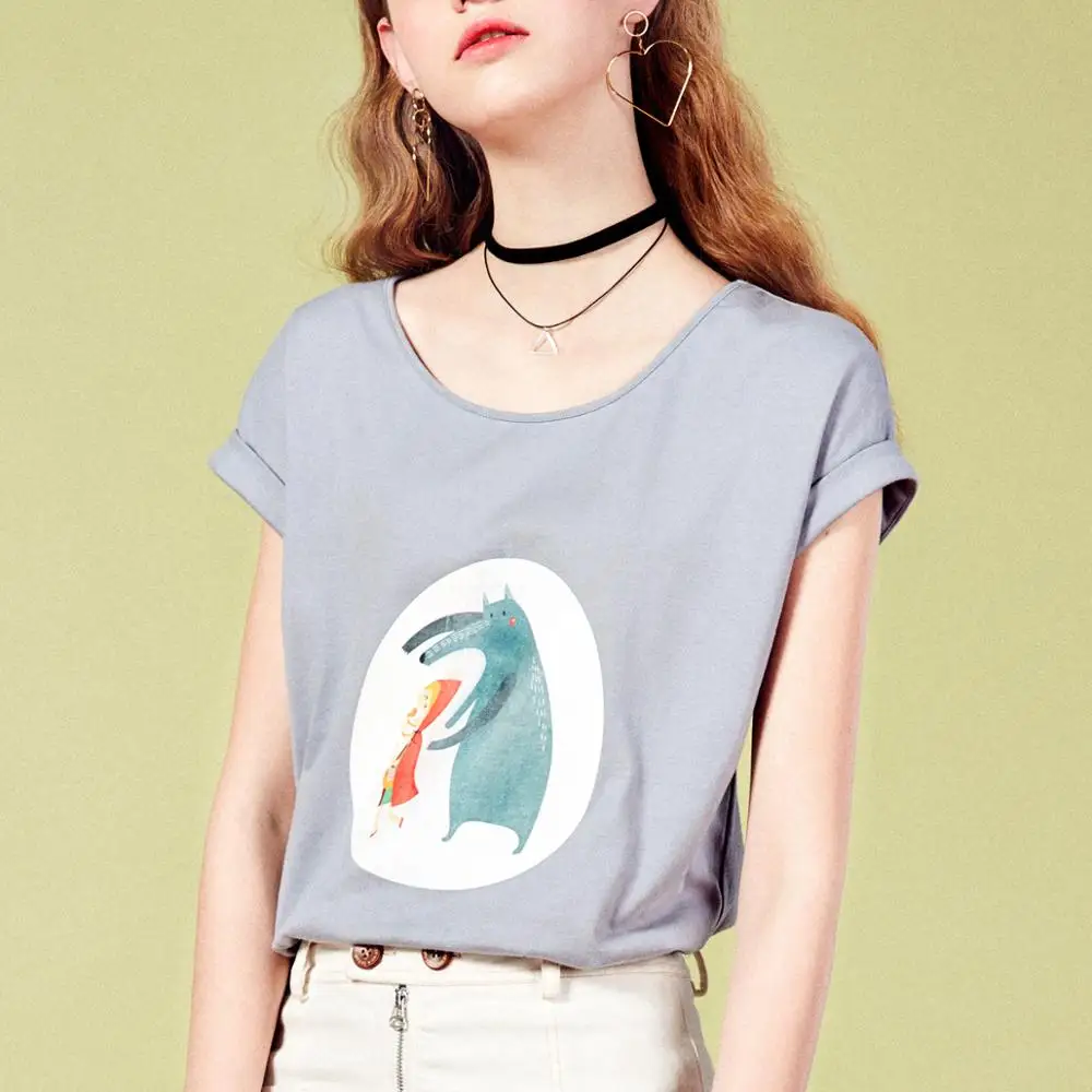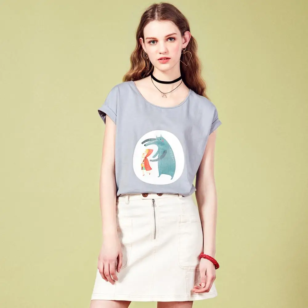 Женская футболка с забавным принтом ARTKA, голубая повседневная футболка из хлопка с круглым вырезом и свисающими плечами, TA11481X, на лето 2019