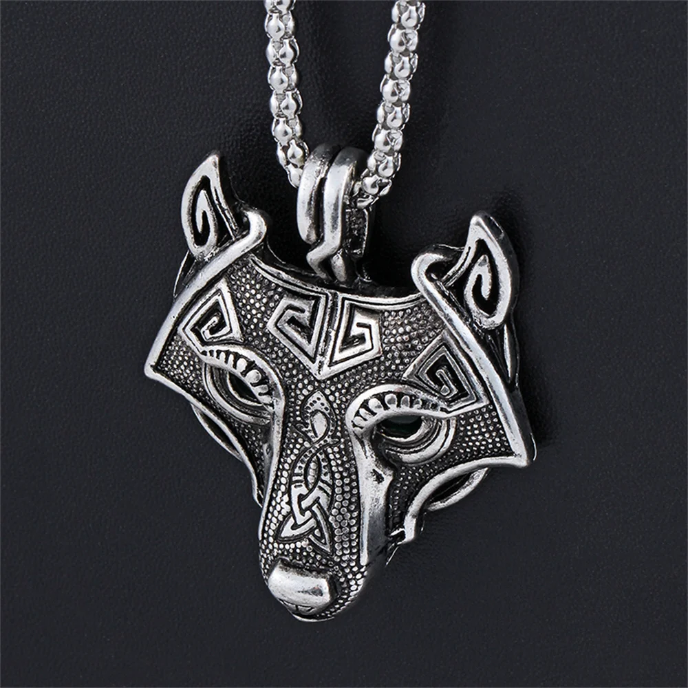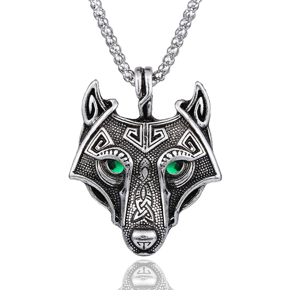 Винтажное ожерелье с подвеской в виде головы волка и викингов, с зе...