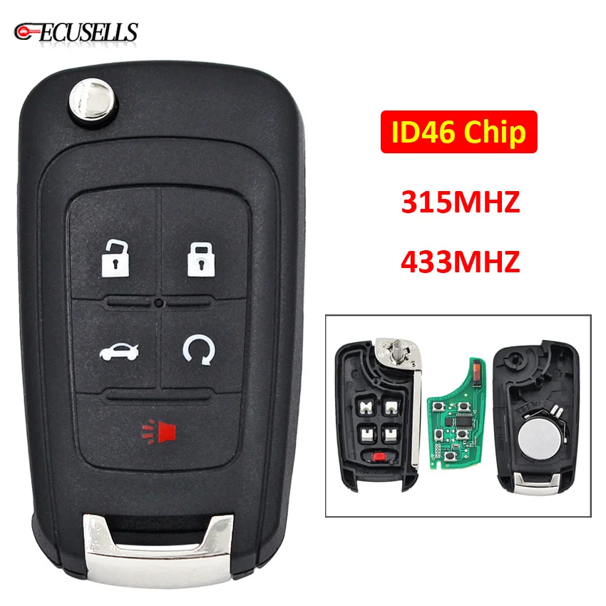 5 кнопочный раскладной дистанционный ключ для Chevrolet Camaro Cruze Equinox Impala Spark Sonic Volt 315Mhz/433Mhz ID46 Chip Uncut Blade