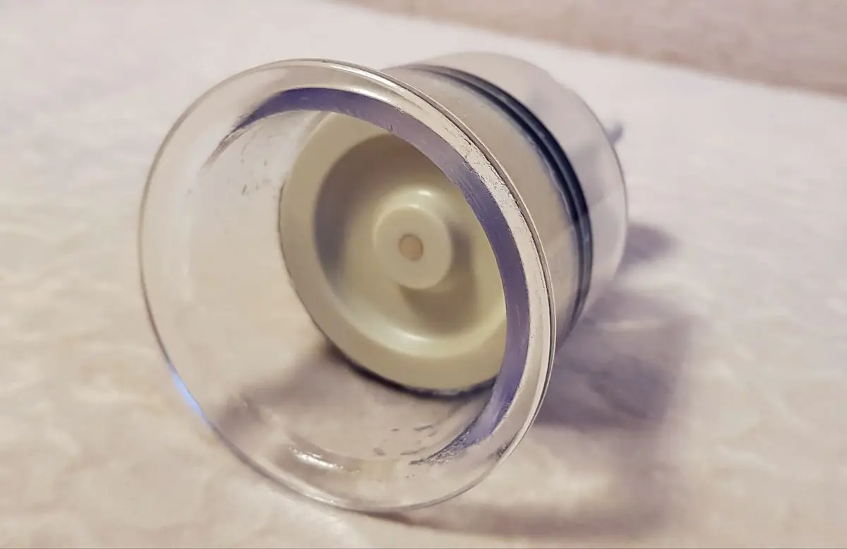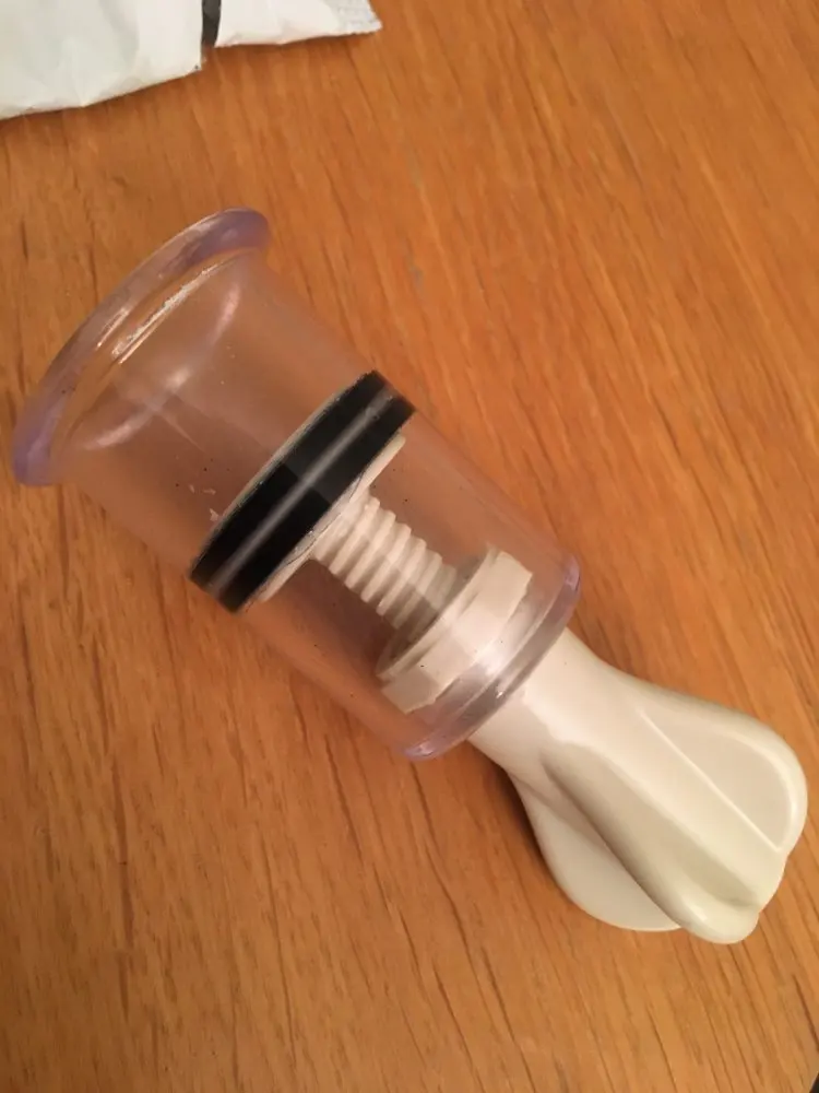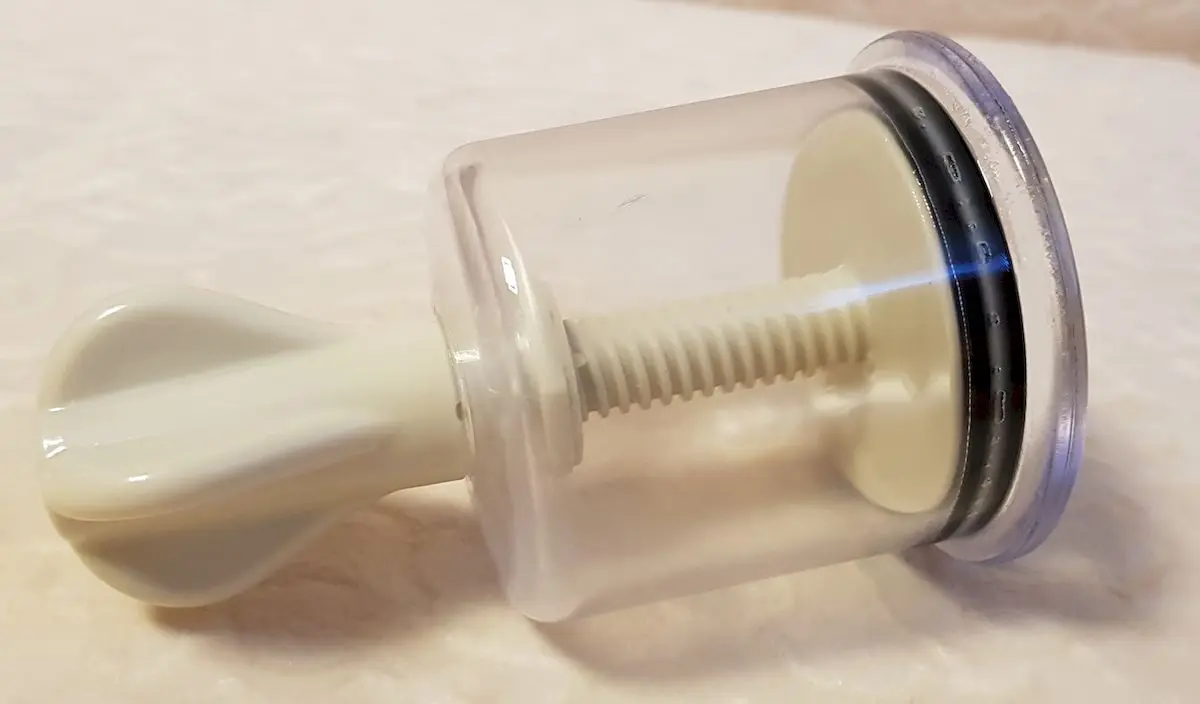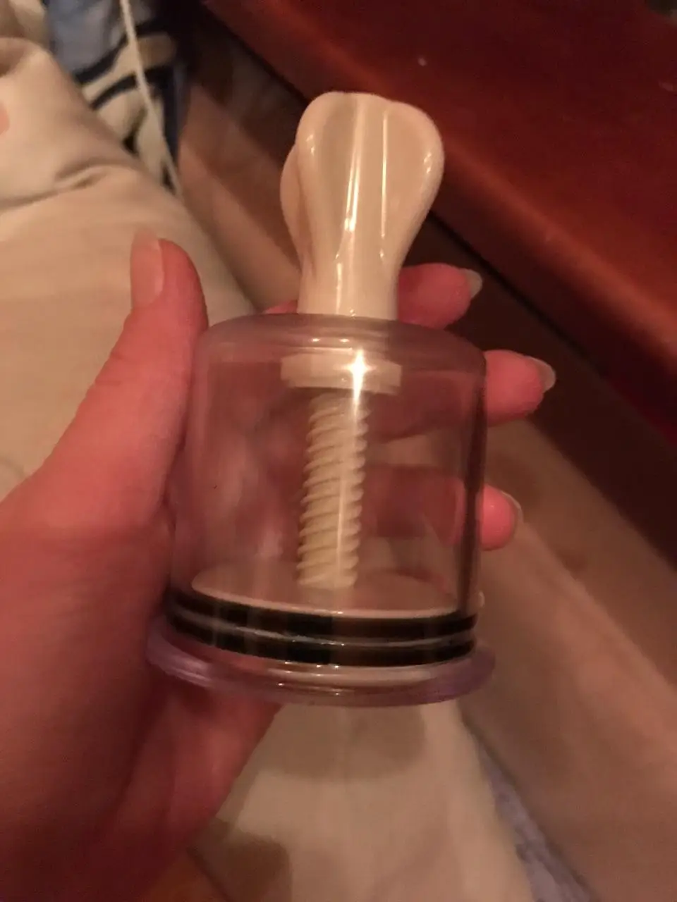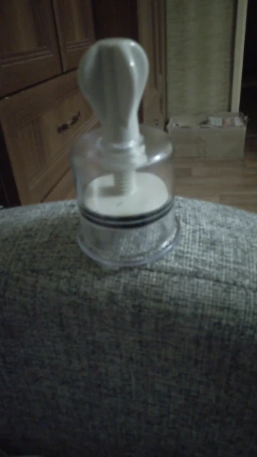 Банка вакуумная с плавной винтовой регулировкой всасывания. Идеальной средство для некоторых видов массажа. Широкие края банки для более плотного прилегания с коже (обычные быстро слетают при передвижении). Пластиковый винтовой шток соединён с диском, снабжённым эластичной манжетой. Части смазаны вазелином. Сделано добротно из качественного пластика. Товаром доволен. Рекомендую! Доставили за три недели в Москву почтой. Трек отслеживался весь путь.