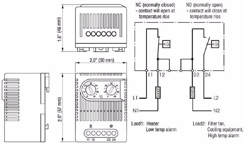 Нормально закрытый NC и нормально открытый мини-компактный термостат