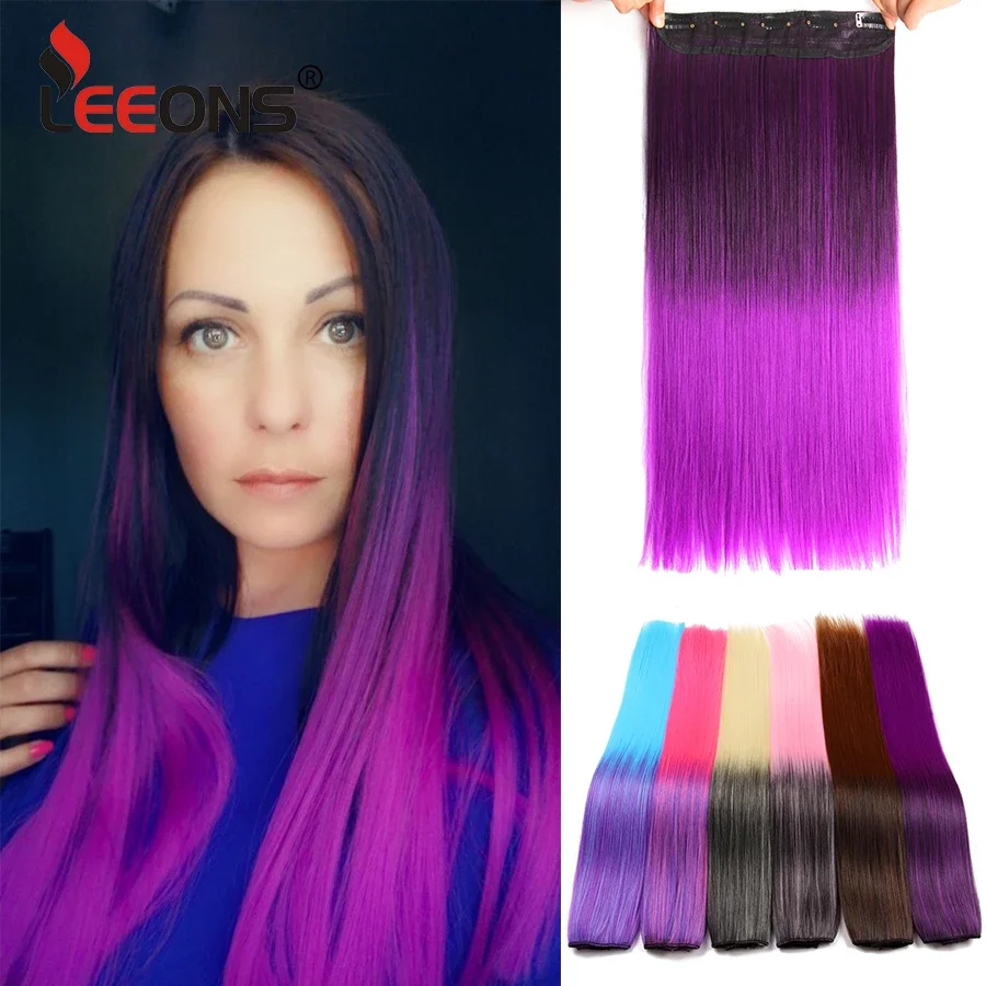 Накладные шиньоны Leeons, 5 зажимов, Длинные прямые, 22 дюйма, синтетические, с эффектом омбре, черные, коричневые, 26 цветов