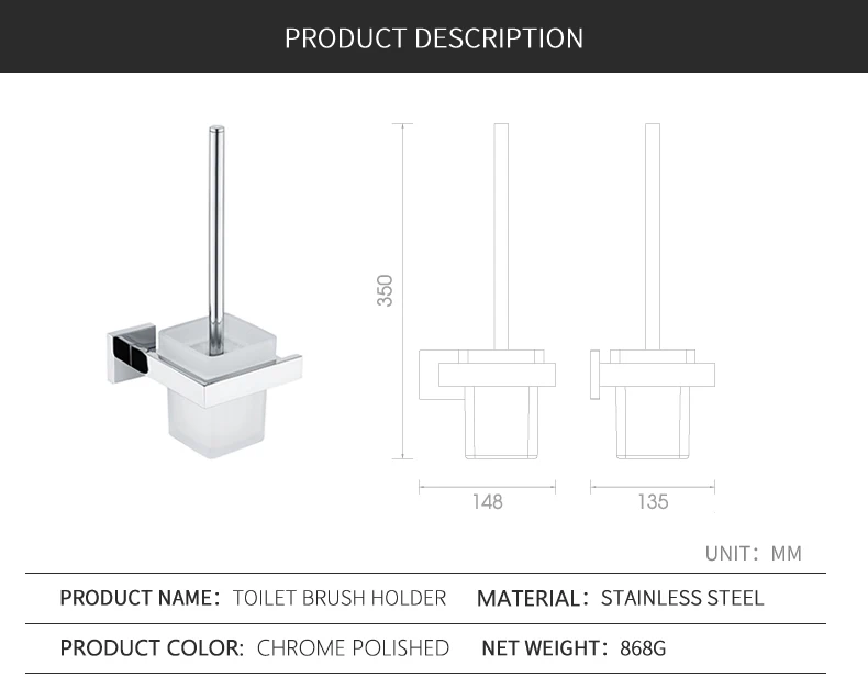Набор для туалетной щетки унитаза, квадратный, настенный держатель для туалетной щетки со стеклянной чашкой, фитинг для ванной комнаты, полированная нержавеющая сталь SUS304