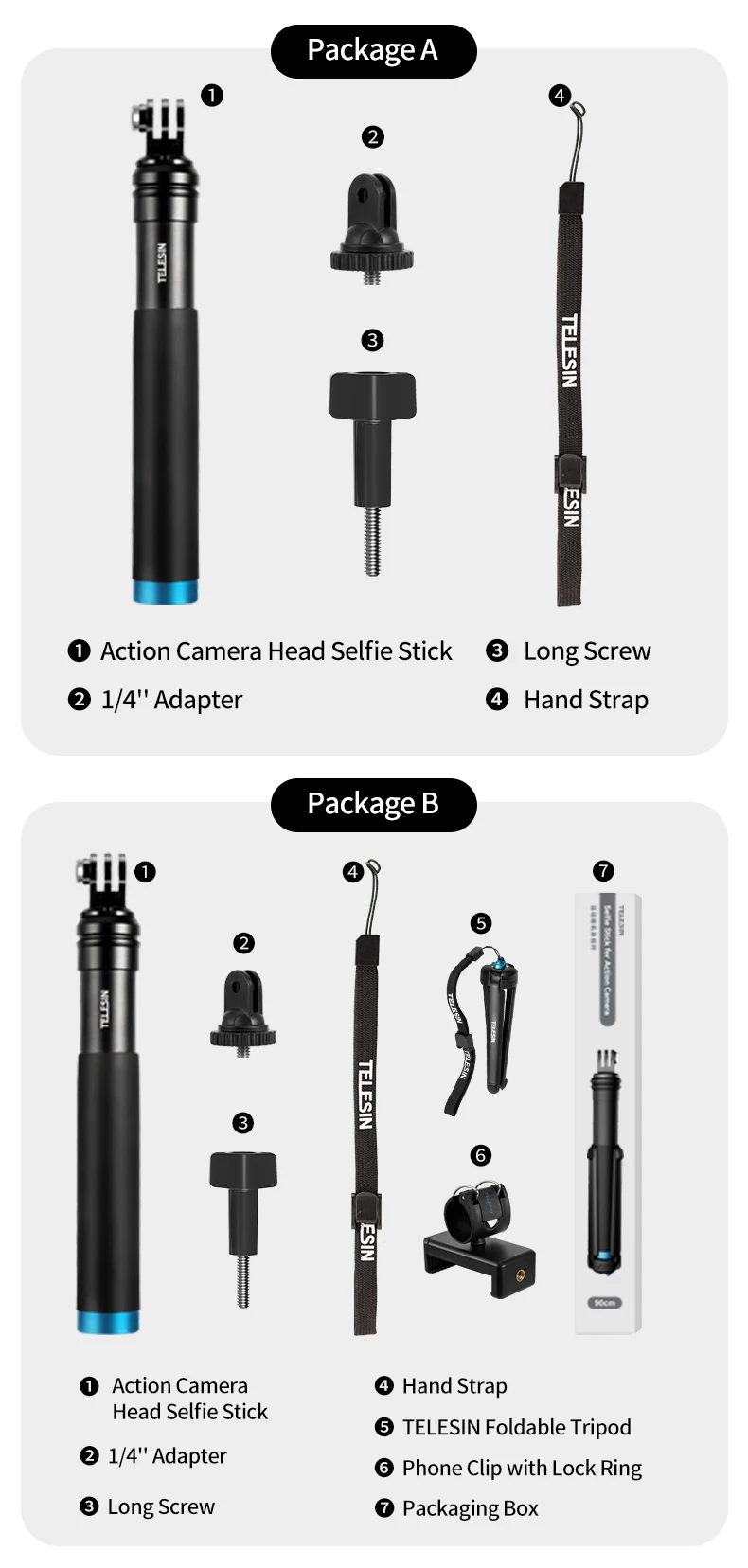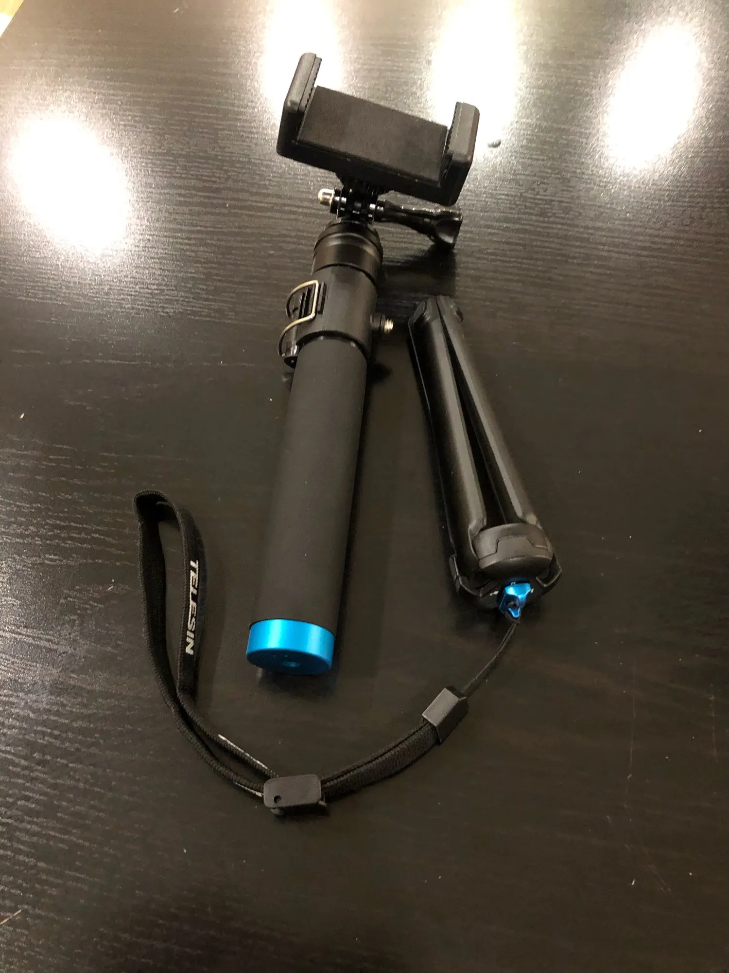 Невероятно быстрая доставка. Я купил другие продукты TELESIN, и они не разочаровывают. Он прибыл в ту же неделю, что и заказ, раньше, чем они обещали. Плохо приходит очень полный, с штативом и адаптером для мобильного телефона. Поддерживает камеру Nikon без проблем (как штатив и в его более низком положении). Чтобы было удобно, как селфи палка, нужно снять ноги.