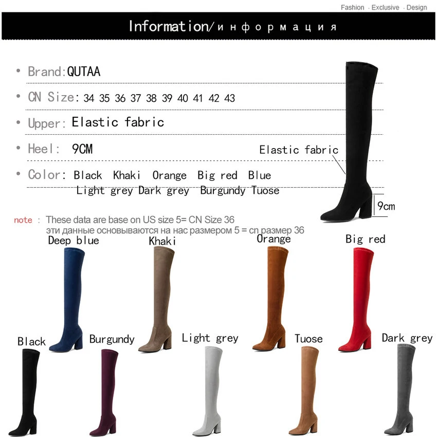 Женские сапоги выше колена QUTAA, черные сапоги с острым носком, зимние сапоги, ботфорты, размеры 34-43, 2021