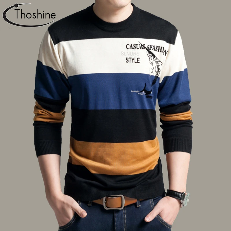 Бренд Thoshine; Сезон весна-осень; Стиль мужские тонкие вязаные свитера в полоску с О-образным вырезом для девочек узор пуловеры мужская повседневная верхняя одежда в стиле пэчворк Топы