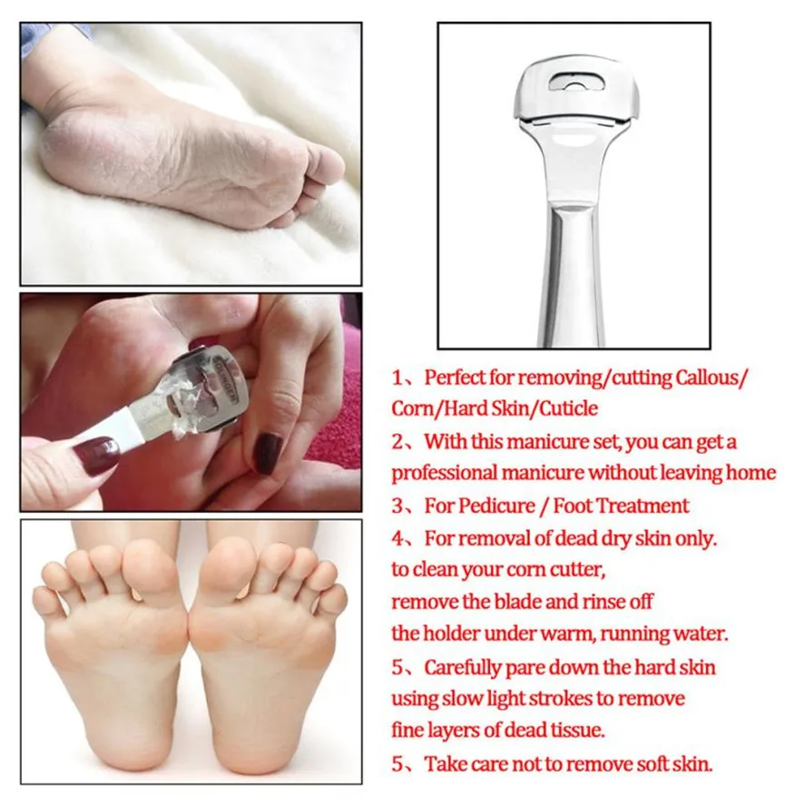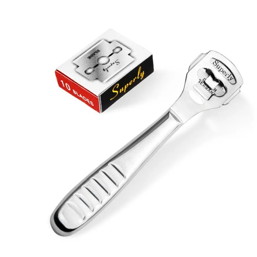 Новый инструмент для ухода за ногами из нержавеющей стали 1 шт. для удаления омертвевшей кожи рубанок резак бритва + 10 шт. лезвий 34