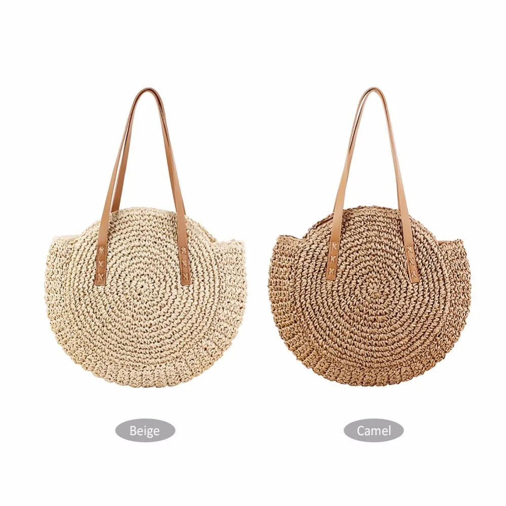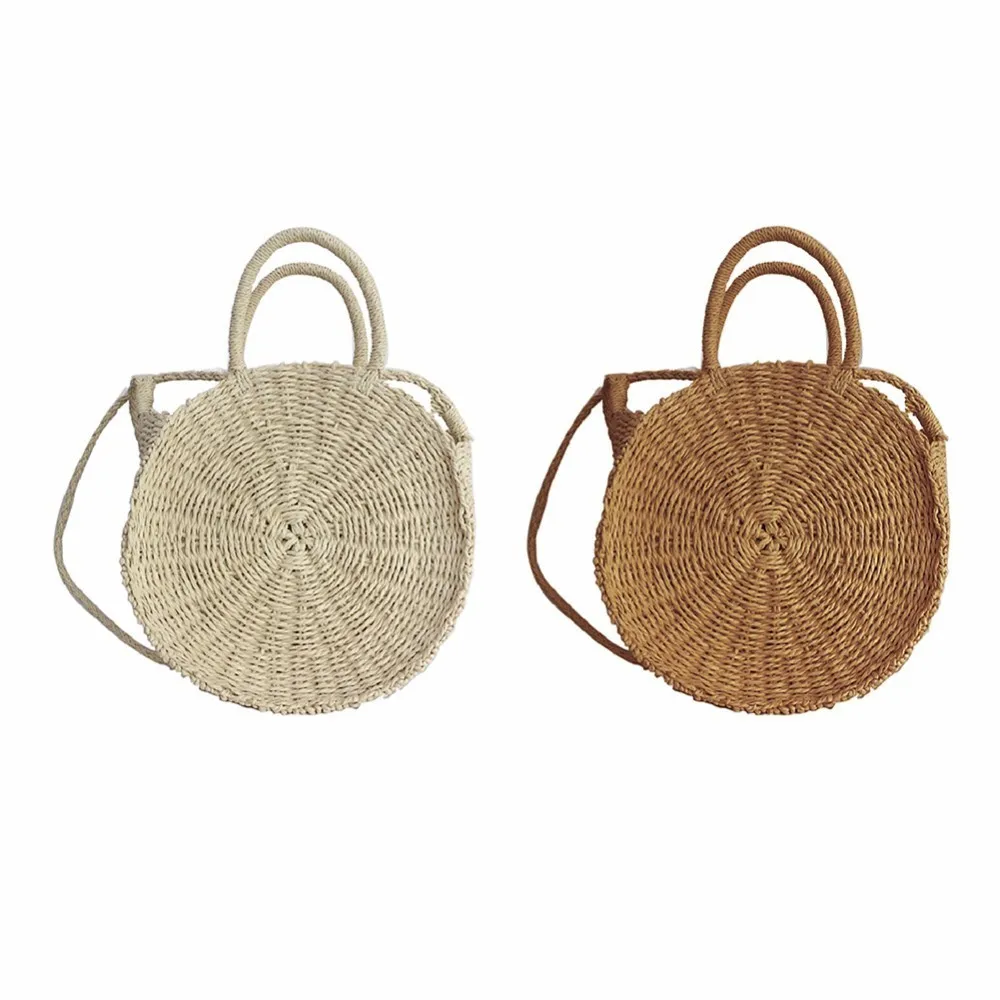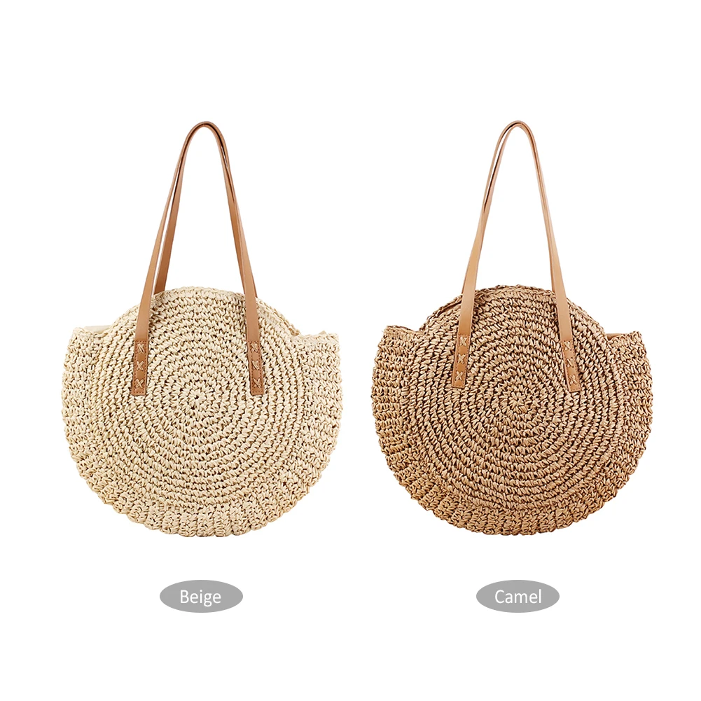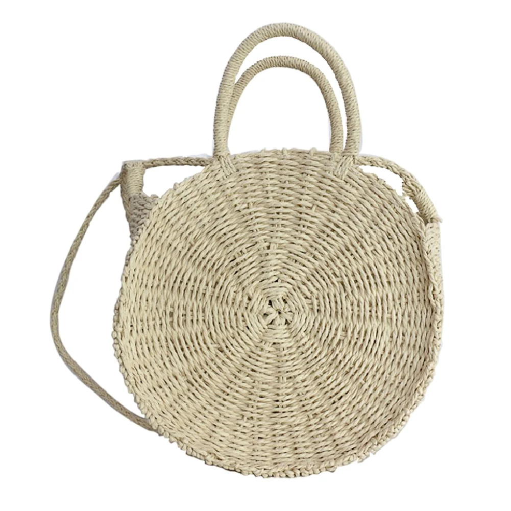 Фирменная новинка открытый круглое пляжное Плетеный соломенный Тканые Пляжная сумка двойного назначения дорожная сумка для путешествий, сумка через плечо