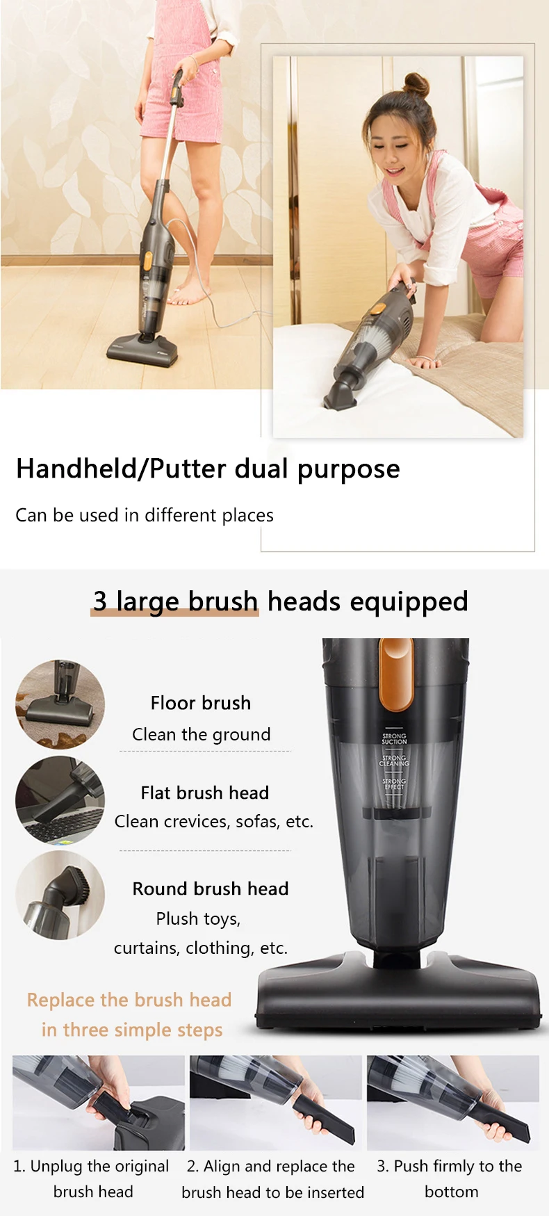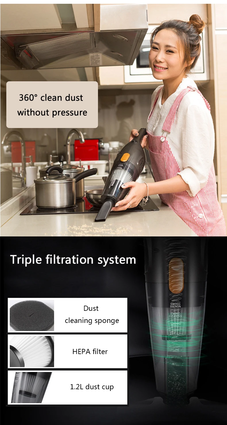 Портативный бытовой пылесос JIQI 2 в 1 с функциями Мощное всасывание, ручной пылесборник, чистка ковров, удаление клещей, 3 насадки