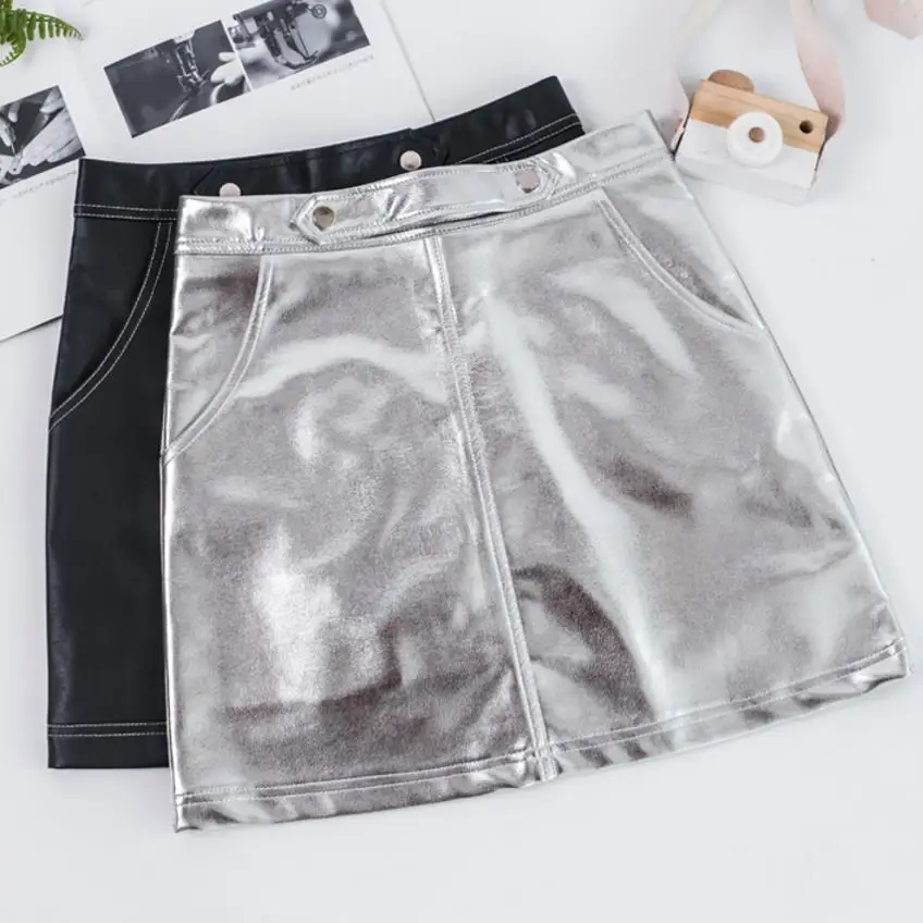 2021 летняя Серебристая кожаная юбка с высокой талией, облегающая мини-юбка трапециевидной формы из искусственной кожи размера плюс 2XL