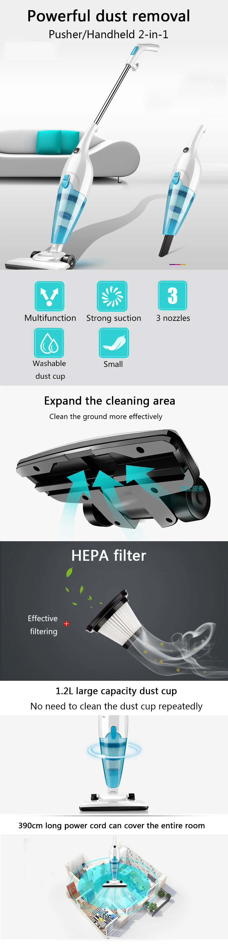 Многофункциональный ручной мини-пылесос JIQI, пылесборник с мощным всасыванием, домашний аспиратор, очиститель ковров, 12 насадок