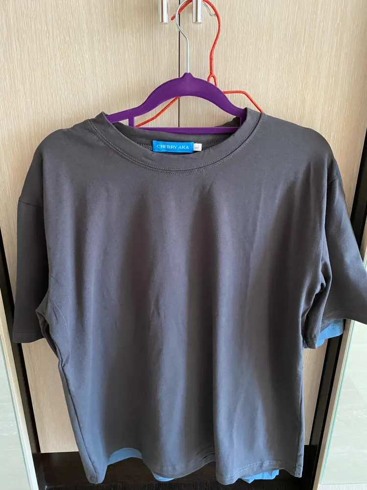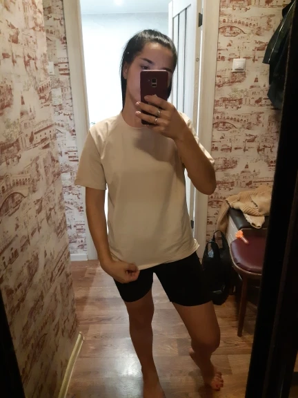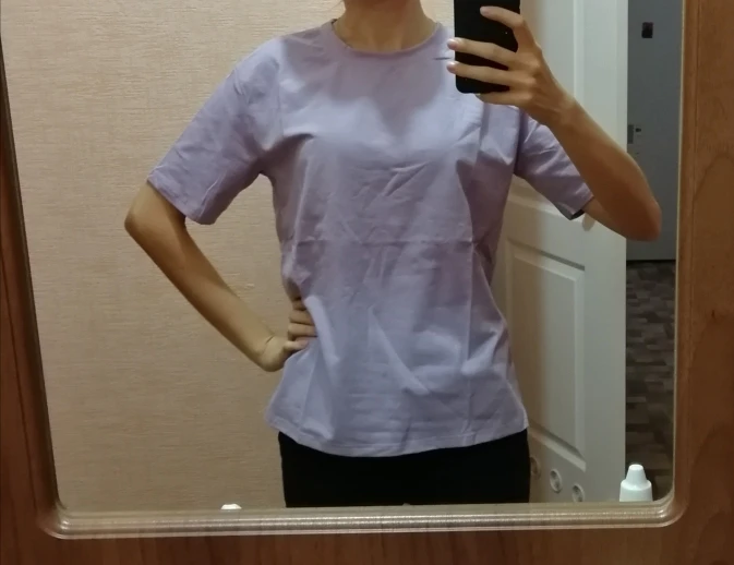 Хорошая базовая футболка, заказала л, на 48 р хороший оверсайз. Сшита качественно, хлопковая, тактильно приятная. Продавец положил в подарок резинку - мелочь, а приятно. Ехала в Минск два месяца.