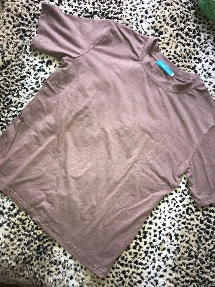 футболка понравилась, но цвет немного не такой, серо-фиолетовый, размер подошёл на ог-85, от-75, не оверсайз. спасибо за подарок))