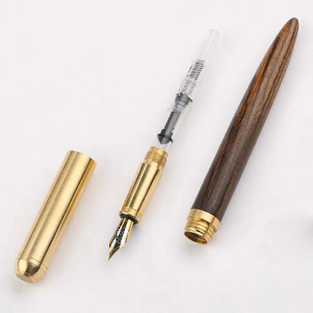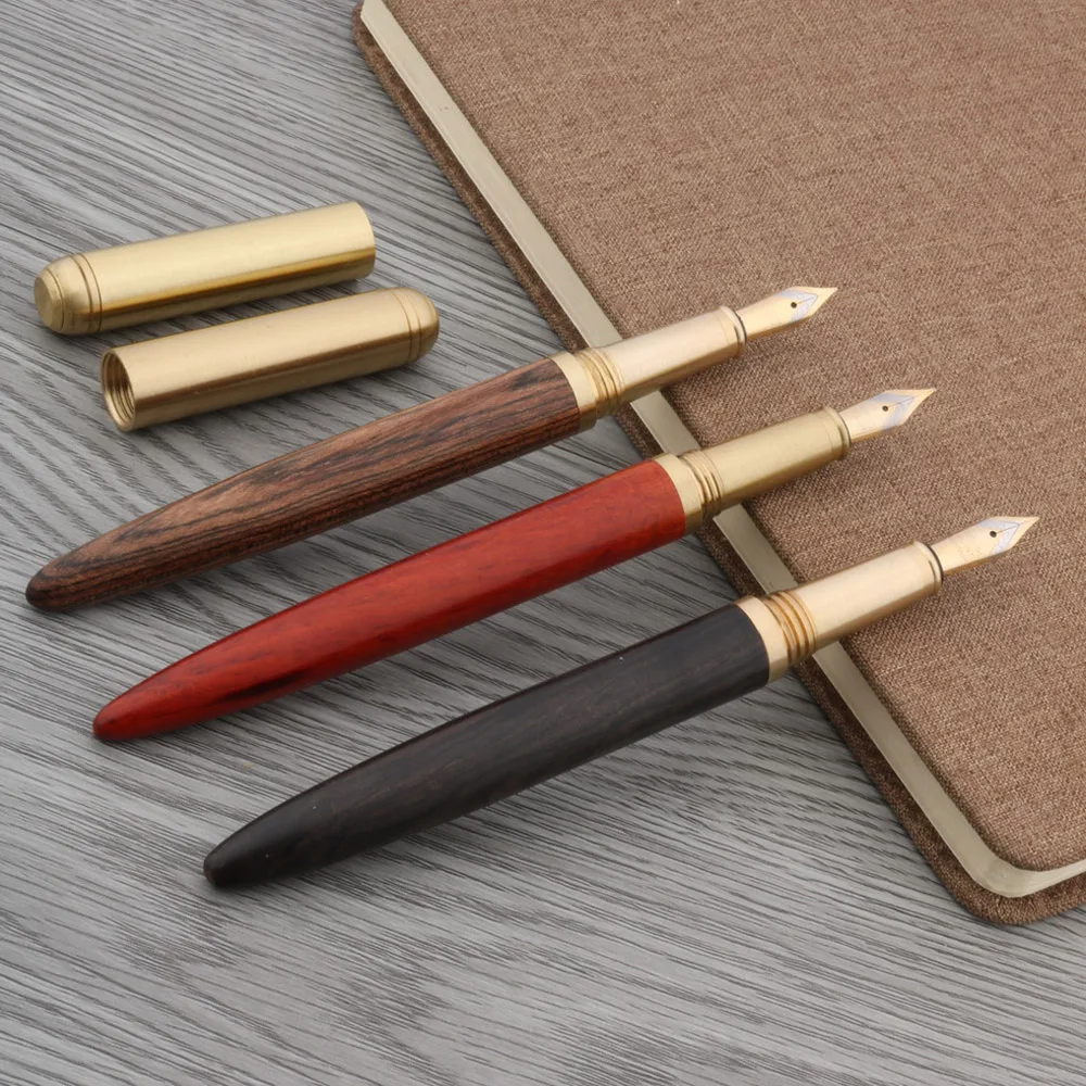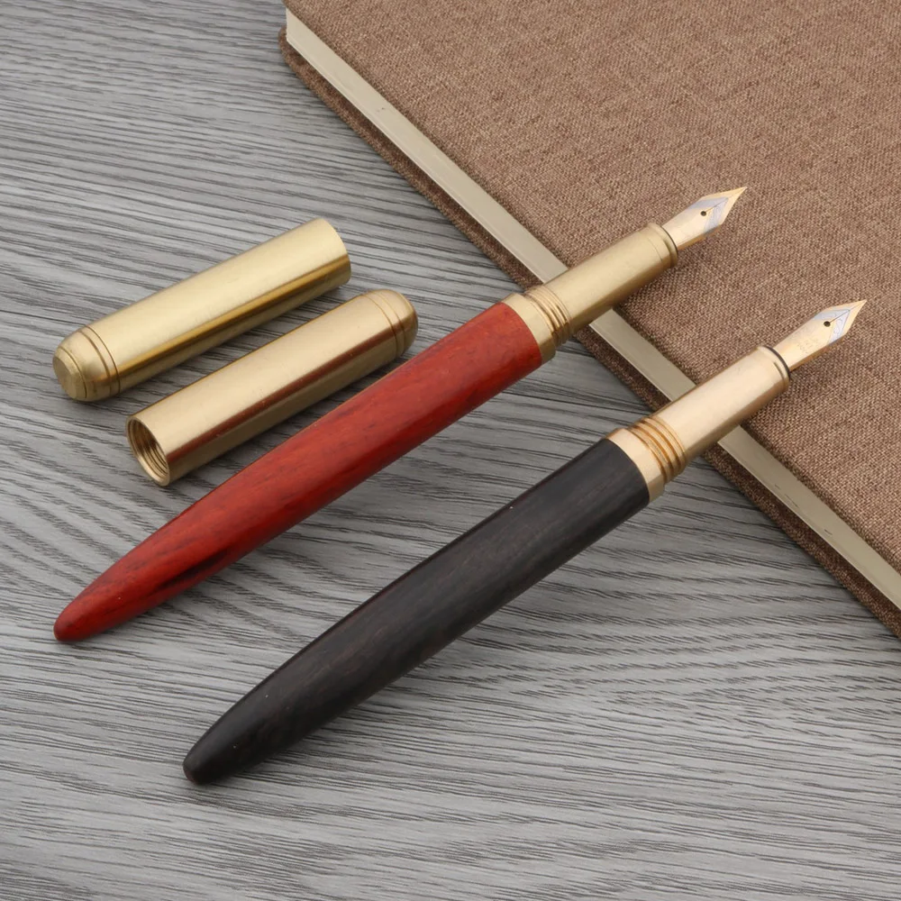 Роскошное Качество, латунная Классическая перьевая ручка, красная деревянная груша, розовое дерево, золотые чернила, ручка, Канцтовары для студентов, офисные и школьные принадлежности