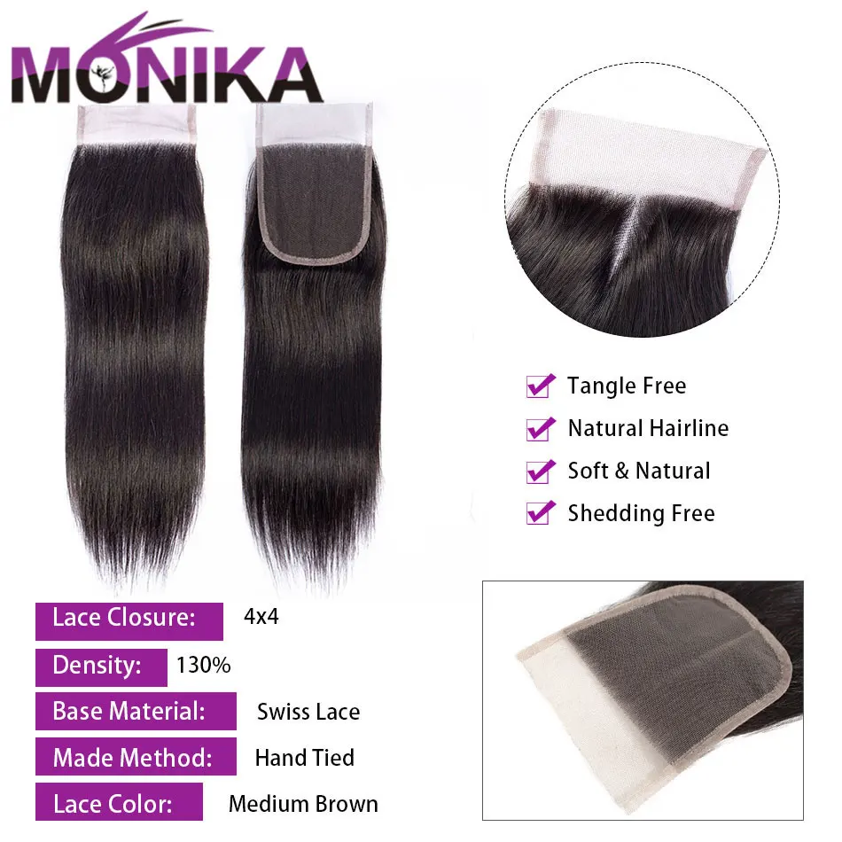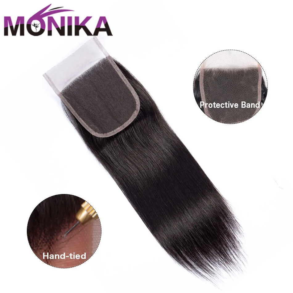 Monika 4x4 закрытые бразильские прямые 100% человеческие волосы закрытия бесплатносредний3 части верхний кружево Закрытие 22 дюйма не реми волосы