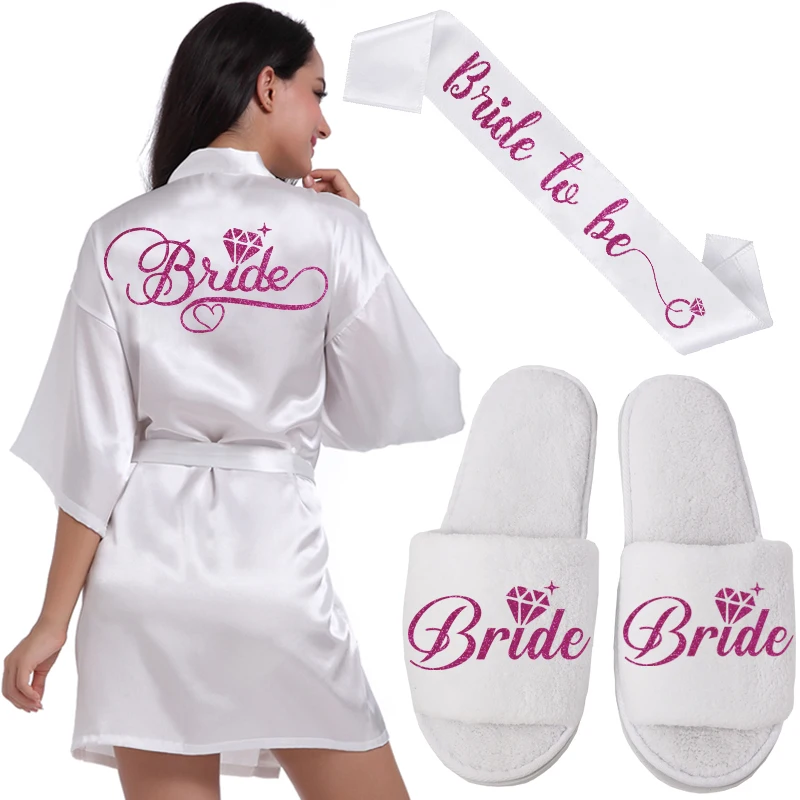 Серебряная надпись для невесты, дневной халат подружки невесты, Женский вечерний халат с цветочным рисунком, свадебные подарки, одежда для готовки
