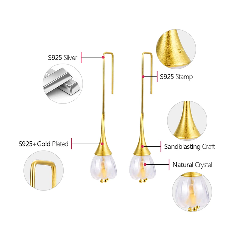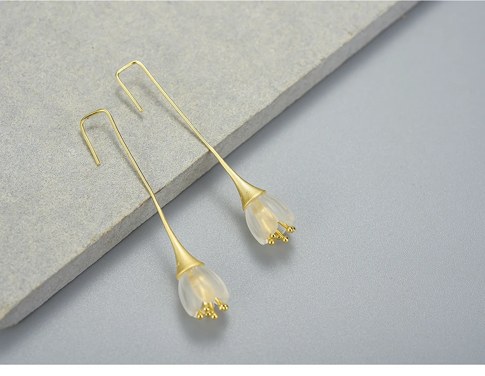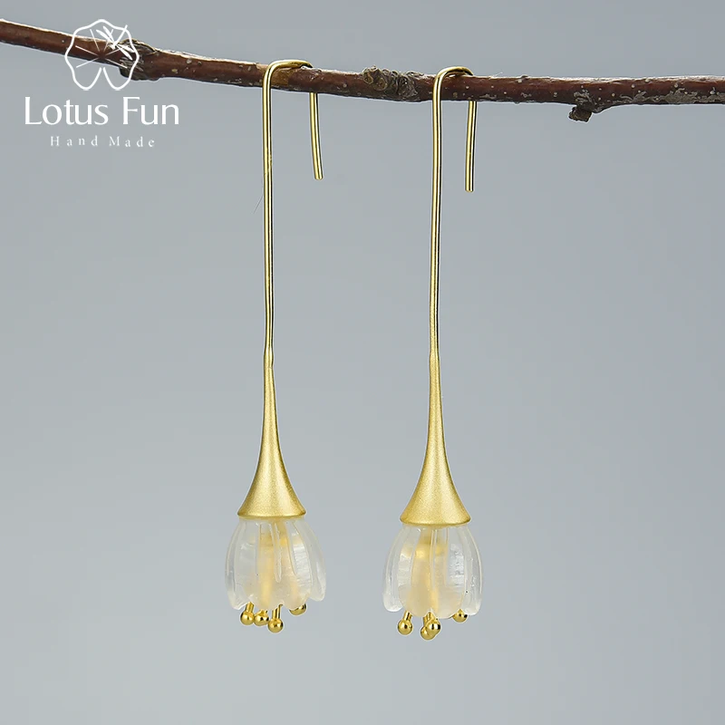 Lotus Fun реальные 925 Серебро Природный кристалл ручной дизайнер ювелирных украшений Нежный Свежий цветок серьги для Для женщин