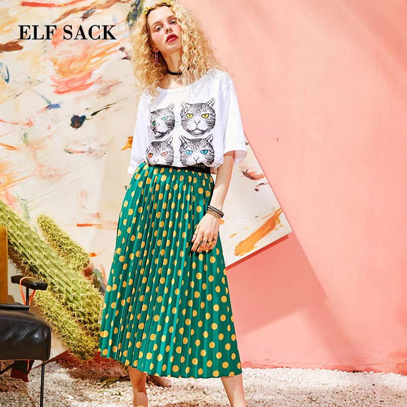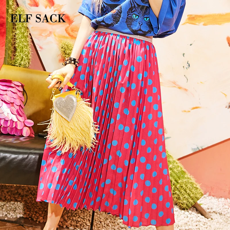 Женская прямая юбка ELFSACK, винтажная повседневная юбка до колена с принтом в горошек, лето 2019
