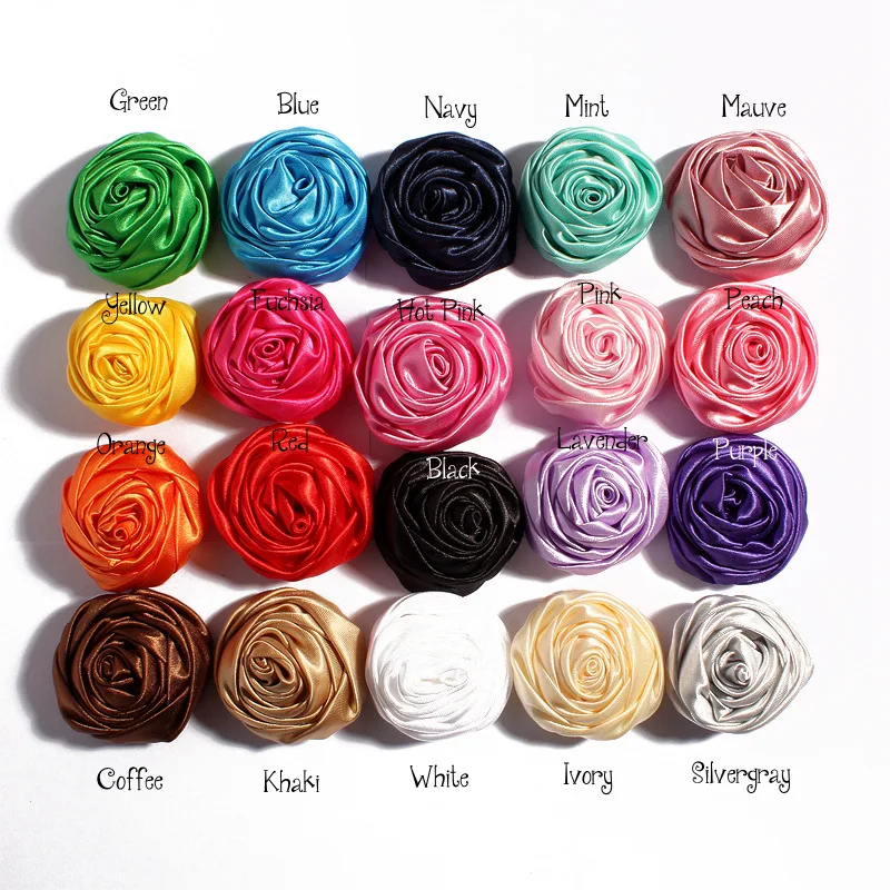 100 шт.лот цветы с свернутыми розетками 2 дюйма, атласные розетки, атласные розы, цветы для девочек, аксессуары для волос