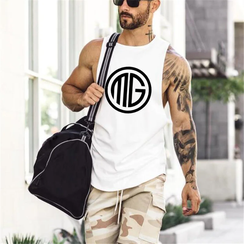 Брендовая одежда для тренажерного зала, хлопковые майки для бодибил...