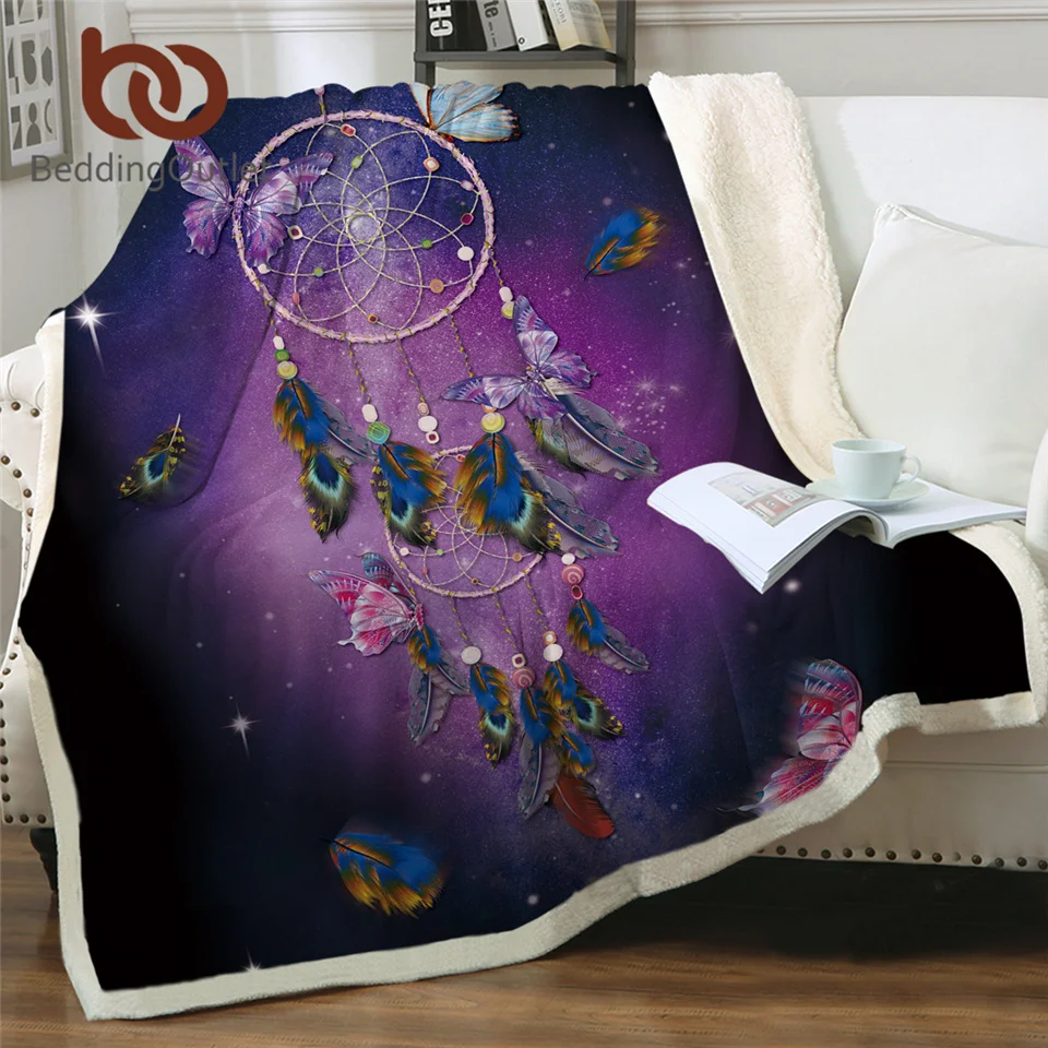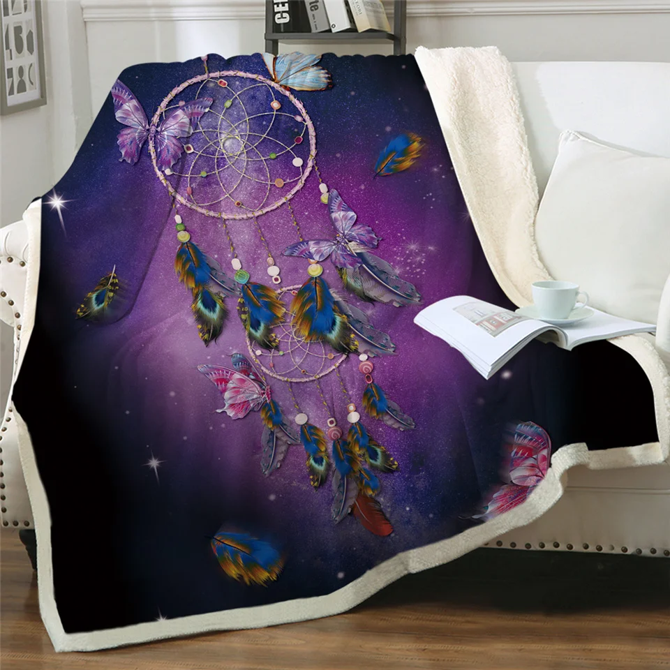 BeddingOutlet одеяло из шерпы с бабочками для кровати, бархатное плюшевое одеяло, ловец снов, фиолетовое романтическое мягкое постельное белье, 1 шт., манта