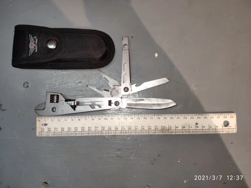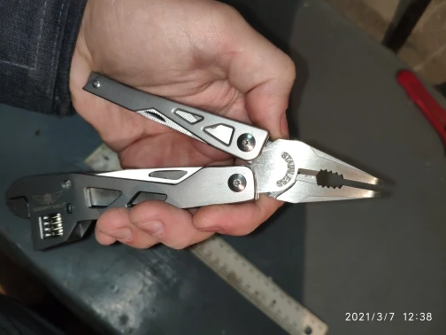 ждал заказ больше 3 месяцев, но продавец молодец , честный и всегда на связи. однозначно у него можно покупать. отличный мультитул, нет ничего лишнего , наподобие пил которыми можно отпилить разве что ветку которую быстрее отломать. нож острый и нормального размера, в походе да и вообще пригодится, хороший паз для его открывания. плоскогубцы в деле не пробовал, но губки сходятся хорошо , плотно. 2 биты с шариком фиксатором чтобы не потерялись. разводной ключ люфтит, но в экстренном случае будет лучше чем ничего. видео с небольшим обзором